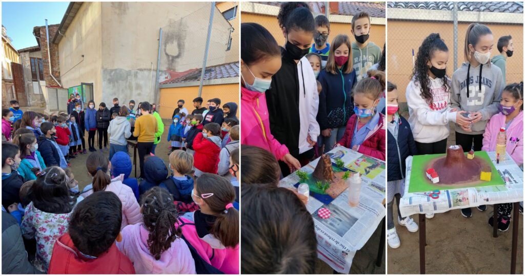 🌋Llavors, els alumnes d’ESO van preparar unes maquetes de volcans i una sèrie d’ingredients per desencadenar una reacció química en forma d’erupció. Un cop ho van tenir a punt, es van reunir de nou al pati de l’escola per ensenyar als seus fillols com és una erupció volcànica.