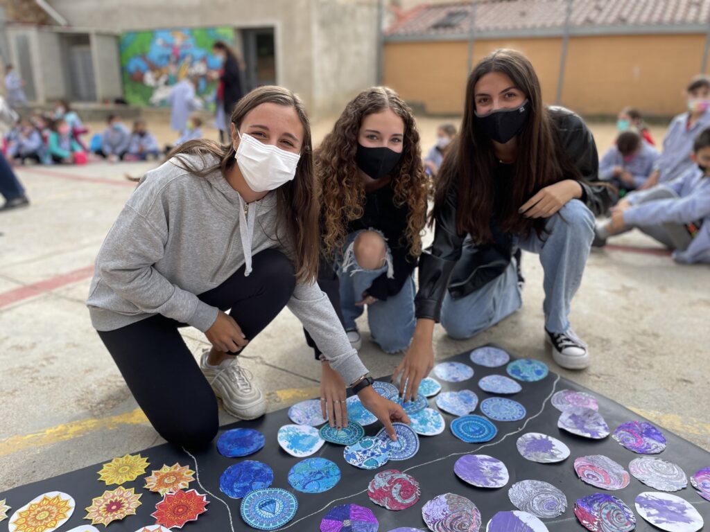 Hem cantat tots junts la cançó del grup Gertrudis “Bon dia vida” mentre hem creat una mandala gegant. Per fer-ho, hem utilitzat petits mandales que cada alumne ha anat pintant durant els dies previs amb la temàtica del curs: els cinc elements.