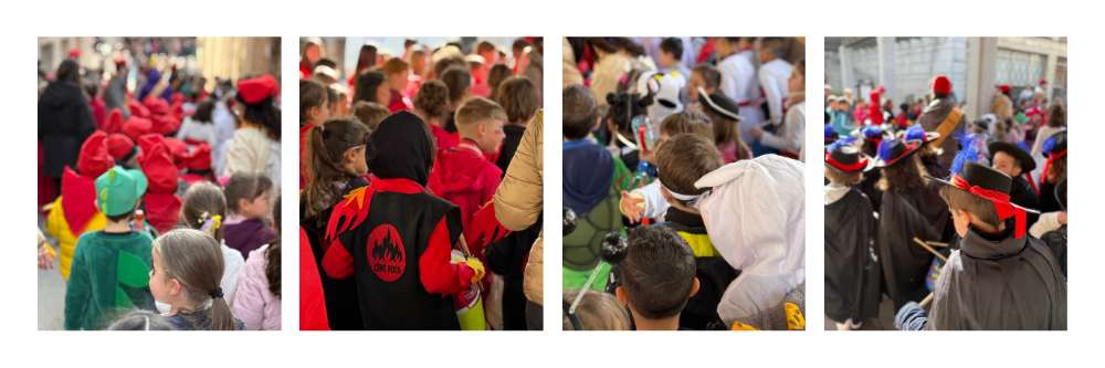Després d’una setmana plena de consignes de la reina carnestoltes on alumnat i professorat van haver de portar mitjons de diferents colors, un complement divertit o una peça de roba d’un familiar, va arribar la consigna definitiva: portar la disfressa del Festival de Nadal per fer la rua de carnaval!
