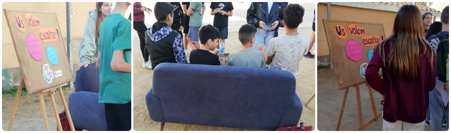 Els dies 10 i 23 d’octubre es va dur a terme una dinàmica al pati: el “Chester sofà”. En aquesta dinàmica, promoguda per la taula de benestar organitzada des de l’Ajuntament, es pretenia que els alumnes, encuriosits, s’acostessin a les dinamitzadores i els expliquin les seves mancances i necessitats d’oci al poble. Les dinàmiques van funcionar molt bé i les tècniques van poder recollir propostes, discutir-les i conversar sobre les inquietuds i demandes dels nostres adolescents.