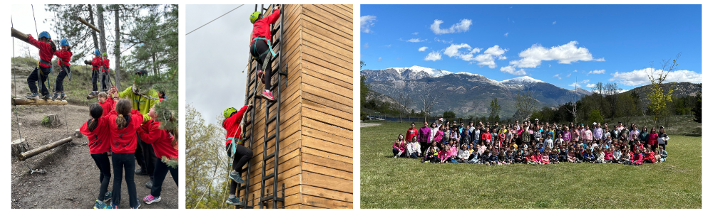 Separats per cursos o per cicles, van gaudir de dos dies de no parar quiets, fent moltes activitats com escalada, tirolines, Land Art, cabanyes, jocs de nit…, els grans van ajudar als més petits i junts, van divertir-se i aprendre plegats.
