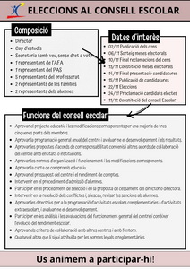 - Votacions: les votacions són personals, directes i secretes. Pot votar tant el pare com la mare o tutor legal dels alumnes escolaritzats en el centre.