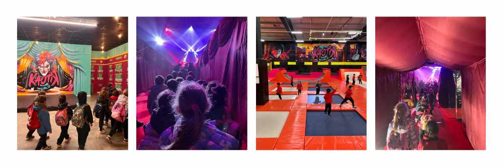 Després van anar a dinar al Kaotik World i, per pair, van fer uns bons salts als seus llits elàstics, tobogans, barres d’equilibris… Van poder gaudir de l’espai per ells sols i els van posar música que els va fer ballar tota l’estona.