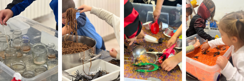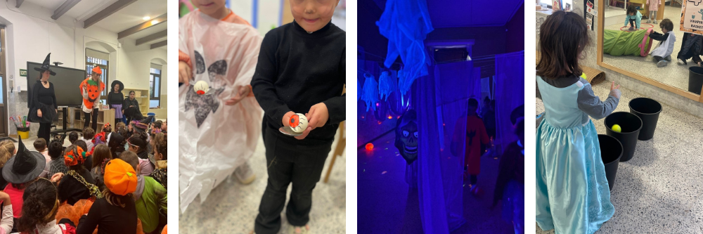 Els alumnes van poder circular lliurement per diferents ambients preparats per a l’ocasió. En un laboratori misteriós elaboraven pocions i experiments, a l’espai de manualitats creaven caretes, calderes de bruixa o cares de Frankenstein, i també hi havia una casa encantada amb un recorregut marcat al terra que calia seguir a més de superar algun ensurt. També hi havia un espai de jocs per compartir bons moments amb els companys i companyes.