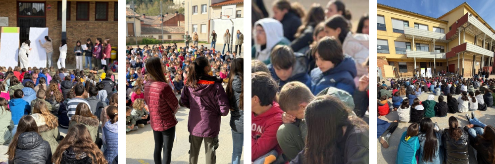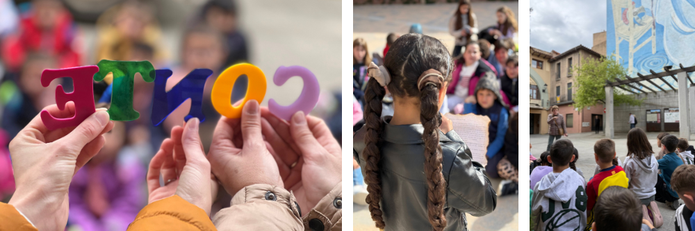 La setmana va començar amb una activitat conjunta al pati del centre. Unes quantes alumnes de secundària van llegir un conte inventat pels docents que tractava de dues ciutats separades per un riu. En una d’elles tot era literatura, lletra, textos, grisos. L’altra, en canvi, era color, art, creativitat i plasticitat. Al final del conte, les ciutats i els protagonistes aconseguien unir-se mitjançant un pont i entenien que uns i altres podien complementar-se, barrejar-se i donar lloc a creacions espectaculars amb art i literatura. D’aquesta manera, l’alumnat va descobrir de què tractaria la setmana i el museu artístic de centre.