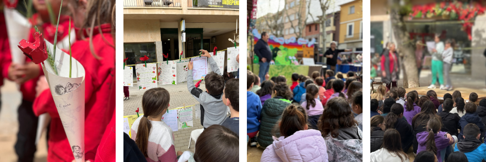 El dimecres 23 d’abril tot l’alumnat va celebrar Sant Jordi participant en diferents activitats proposades per l’Ajuntament del poble a la Plaça Gravalosa. Des dels més petits, que van anar a escoltar contes, a la poesia estesa d’Òmnium Cultural i als tallers de paper plegat. A més, es van fer diferents tallers artístics relacionats amb la Diada. Els alumnes de quart d’ESO, per la seva banda, van passar-se el dia venent roses per finançar el viatge de fi de curs a Londres.