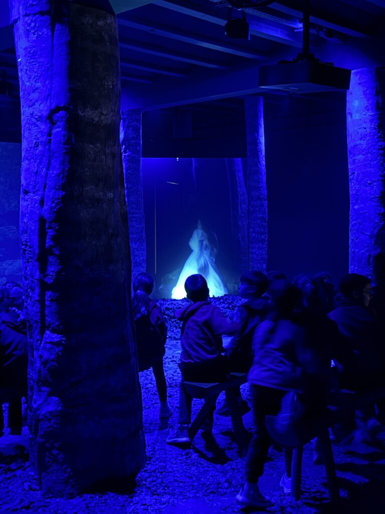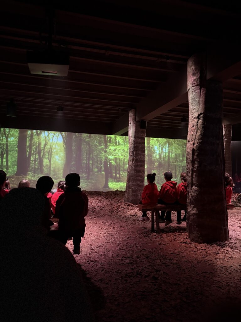 La jornada va començar amb la visualització d’un audiovisual immersiu, que va permetre a l’alumnat endinsar-se en l’entorn del bosc a través d’imatges, sons i una posada en escena molt cuidada, amb elements com fulles de tardor que contribuïen a crear una experiència sensorial completa.