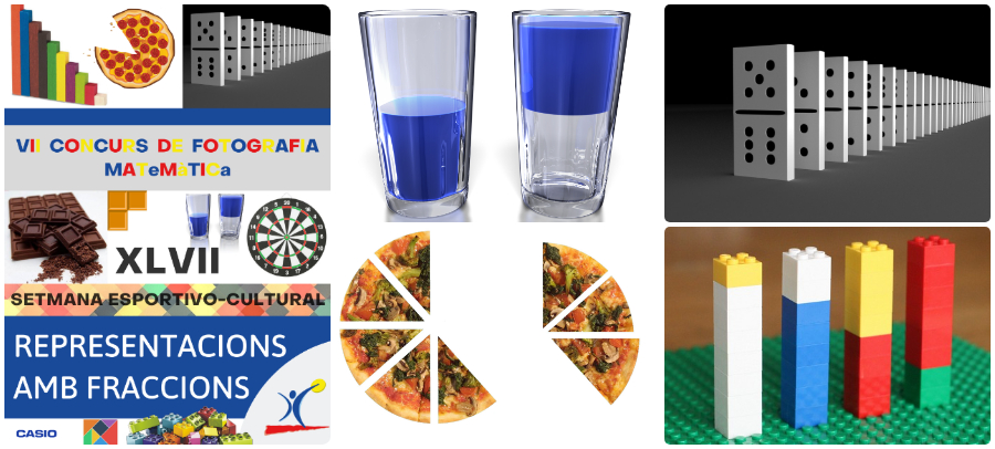 Aquest any el VII Concurs de fotografia MATeMàTICa dins la XLVII Setmana esportivo-cultural tindrà com a tema central: Representacions amb fraccions. Així doncs, la fotografia ha d’estar relacionada amb les fraccions: sumes, representació gràfica o numèrica, equivalències… Pots observar relacions de la natura, d’edificacions, d’objectes… o crear una representació original i divertida. Tot s’hi val!