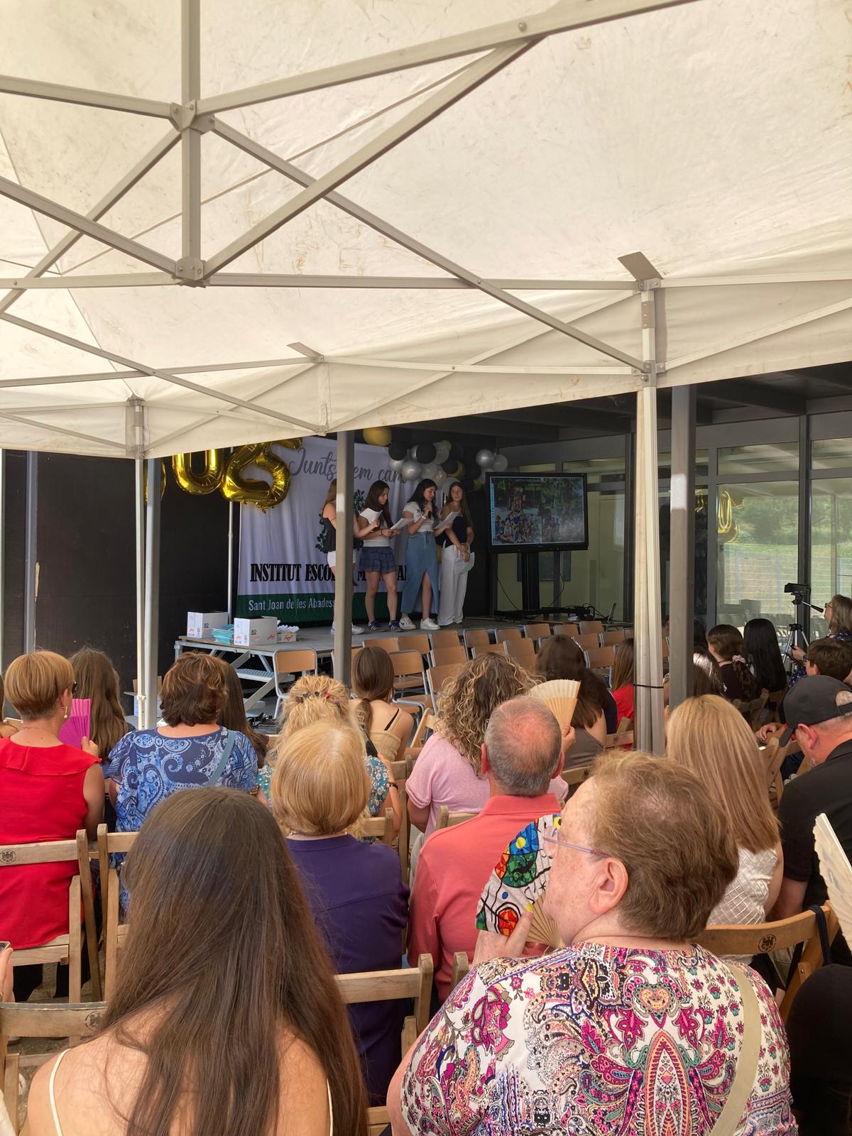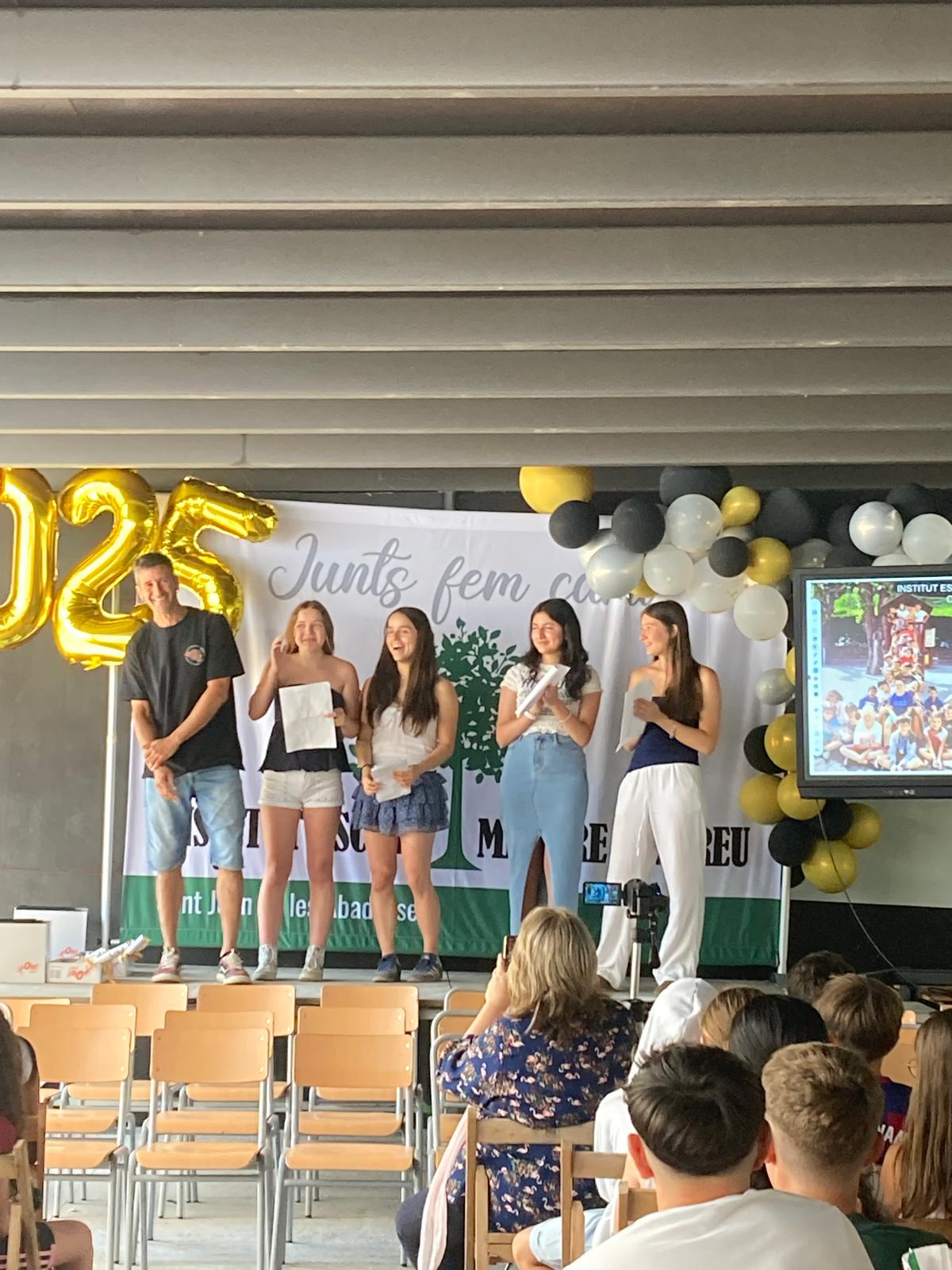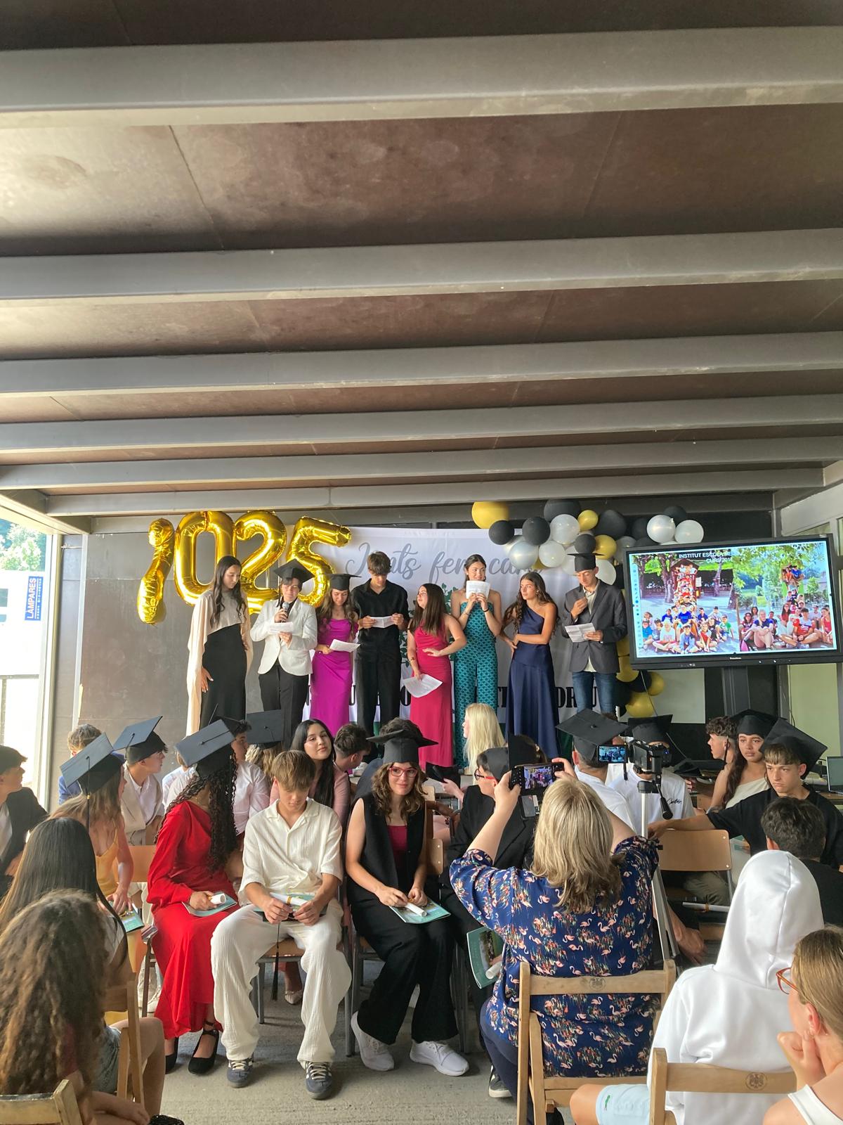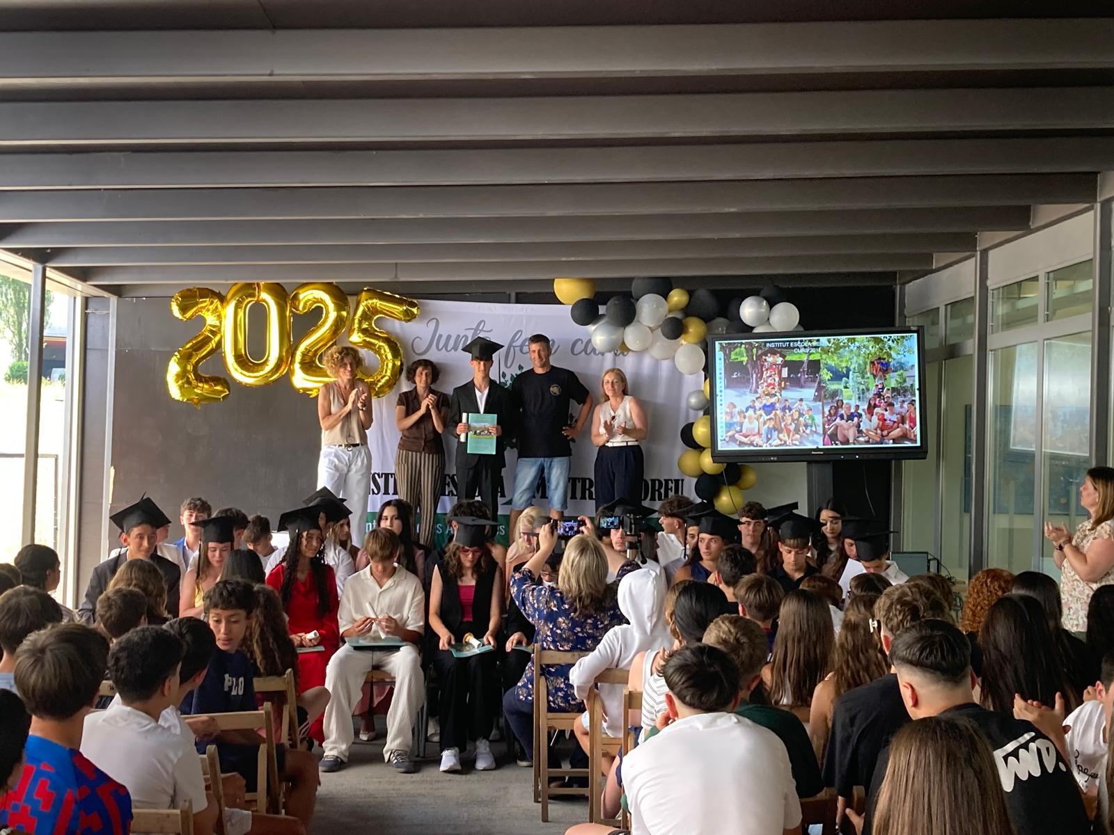 Després de tornar a l’institut, hem viscut un dels moments més emotius del curs amb l’acte de graduació de 4t d’ESO: la cerimònia s’ha obert amb una presentació plena de caliu i il·lusió, seguida de la tradicional entrega de diplomes, que ha reconegut un a un l’esforç i el recorregut acadèmic dels alumnes.