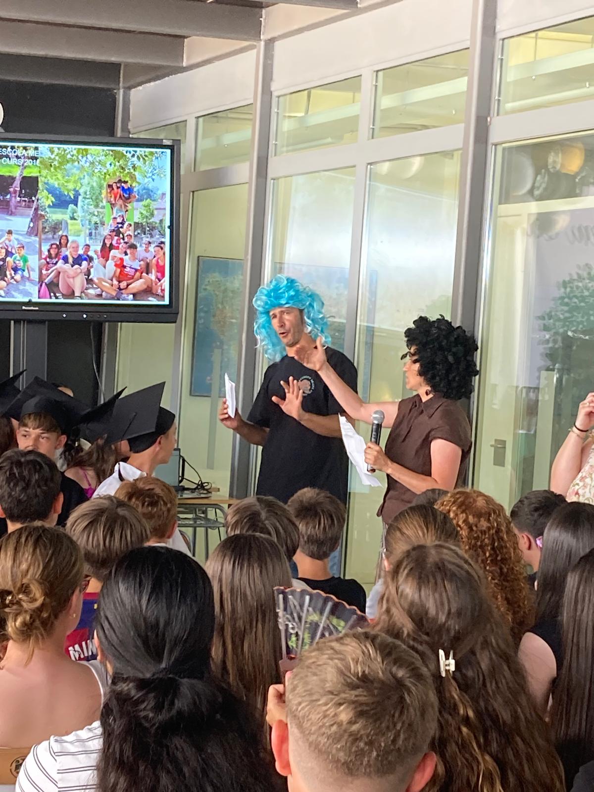 A continuació, l’atenció s’ha dirigit a 4t d’ESO: entregant obsequis i reconeixements a aquest curs, mentre tot l’alumnat de secundaria ha interpretat amb entusiasme una versió adaptada de “Sweet Caroline” per celebrar que heu acabat 4t! 🎵