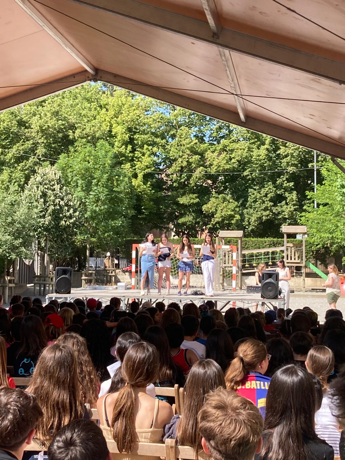 A primera hora del matí, tot l’alumnat ens hem reunit al pati de l’escola per celebrar el final de curs.