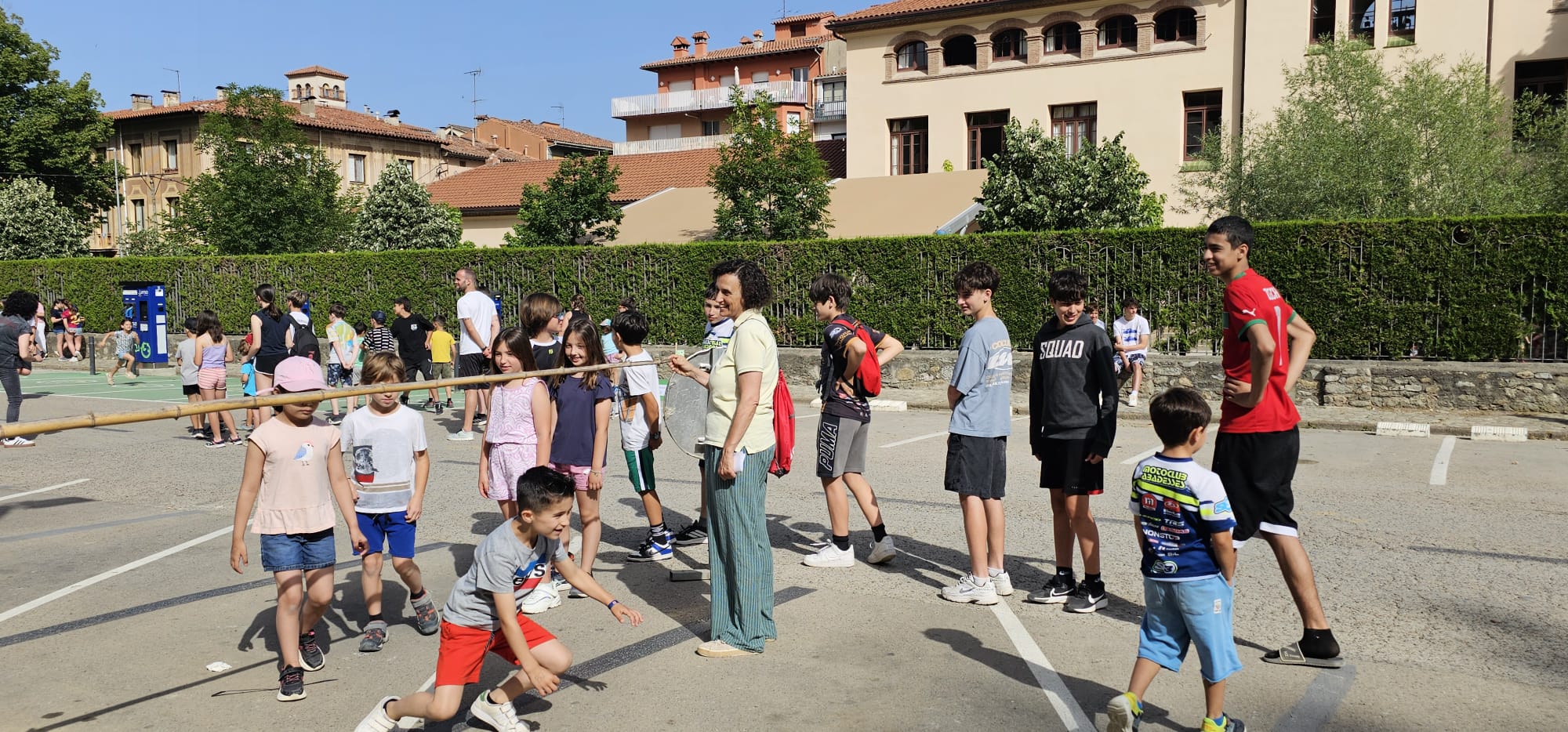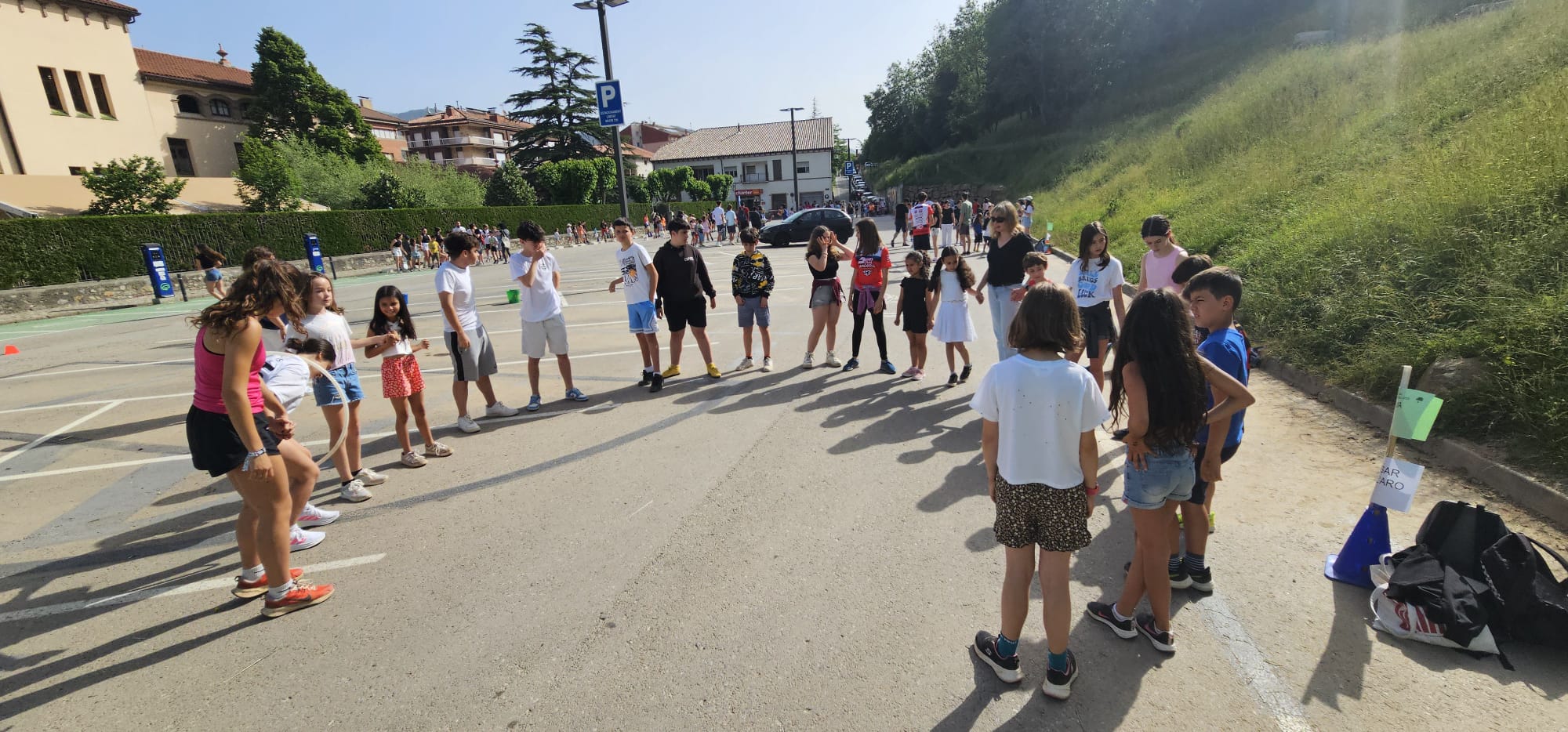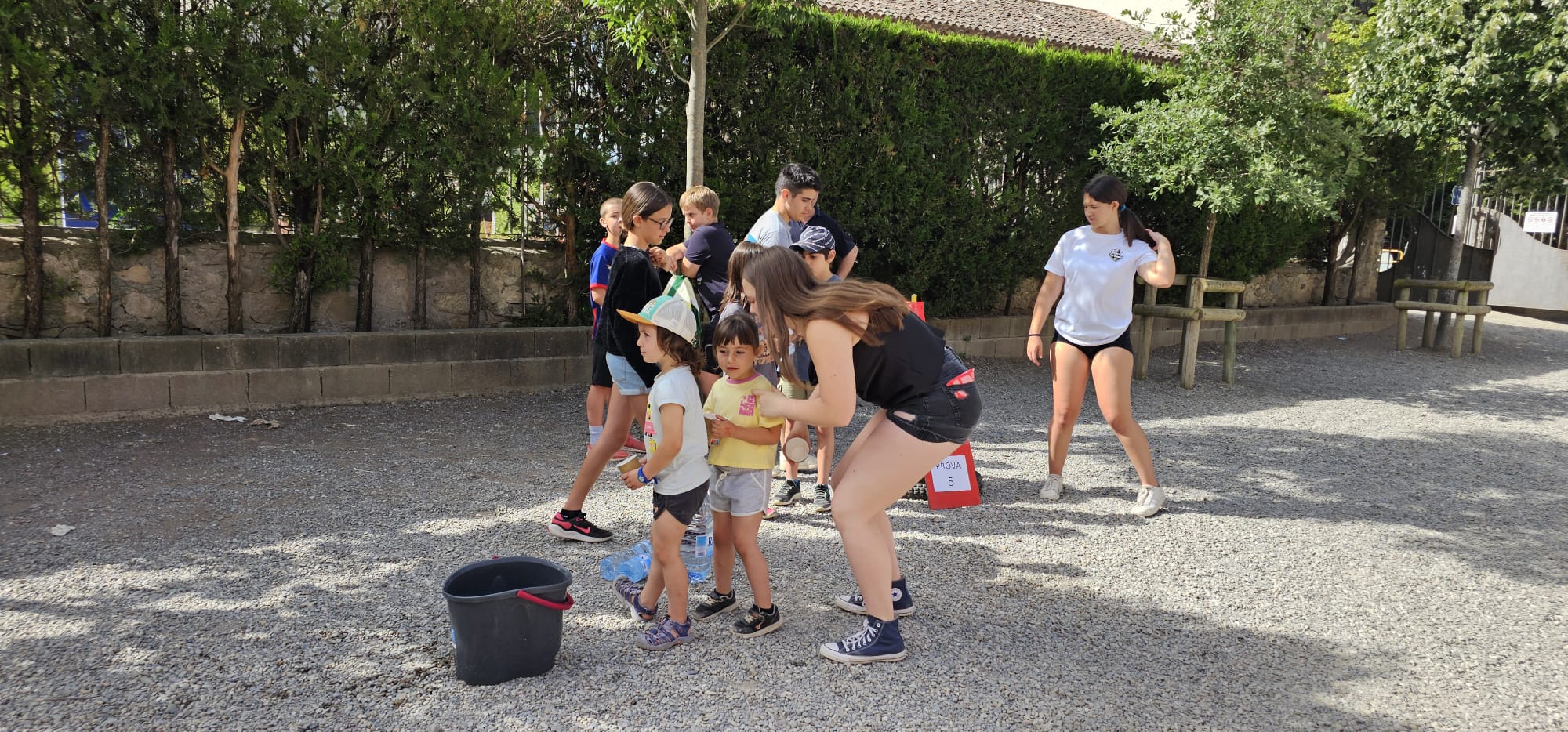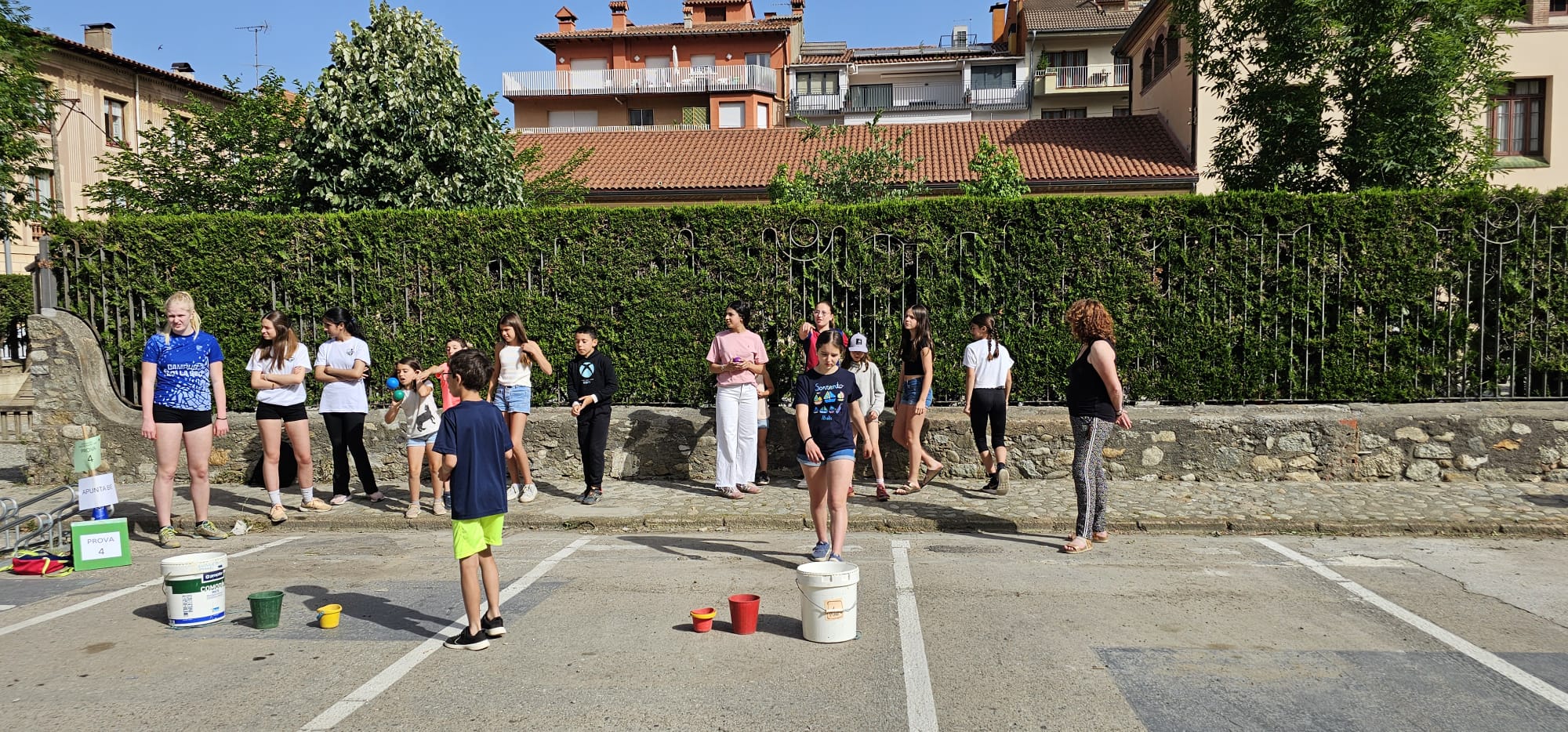 🧩 Després, ha tingut lloc una gimcana amb 6 proves repartides pel pati i pel carrer. Els grups, formats per alumnes d’infantil a 4t d’ESO, han posat a prova les seves habilitats en activitats com punteria, rapidesa, estirar la corda entre d’altres. Després