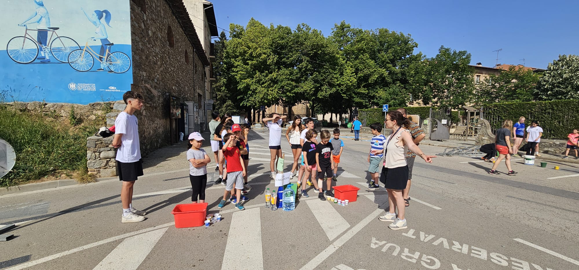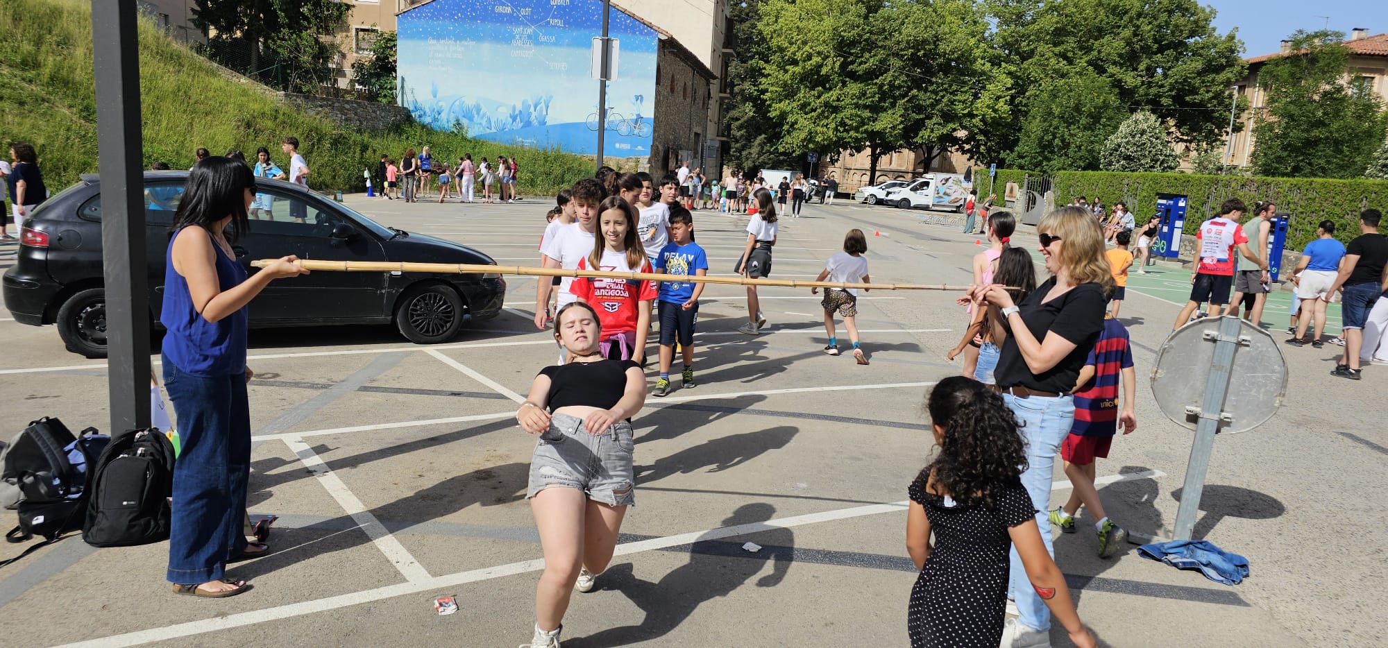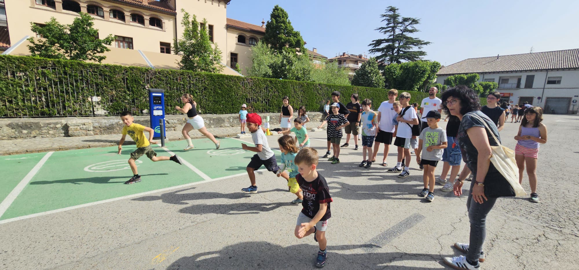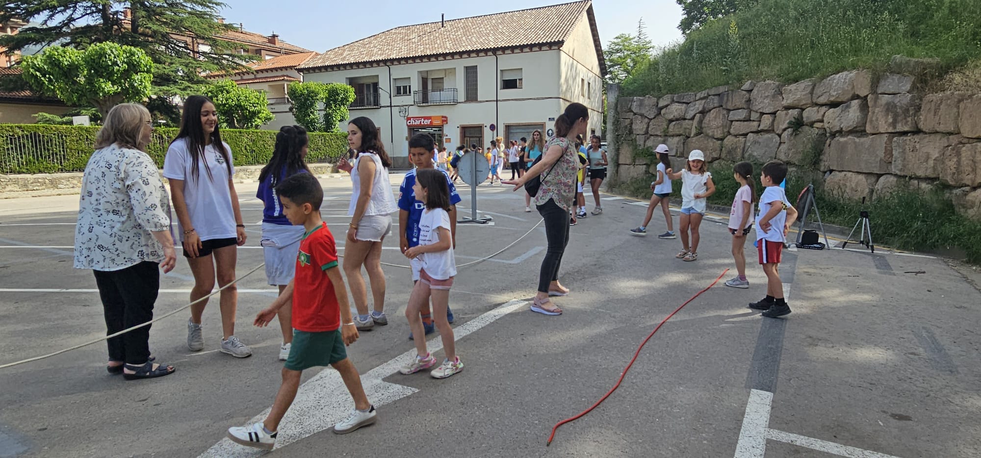 🧩 Després, ha tingut lloc una gimcana amb 6 proves repartides pel pati i pel carrer. Els grups, formats per alumnes d’infantil a 4t d’ESO, han posat a prova les seves habilitats en activitats com punteria, rapidesa, estirar la corda entre d’altres. Després
