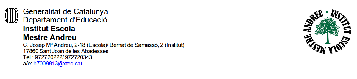 - Targeta sanitària individual (TSI) de l’alumne/a.