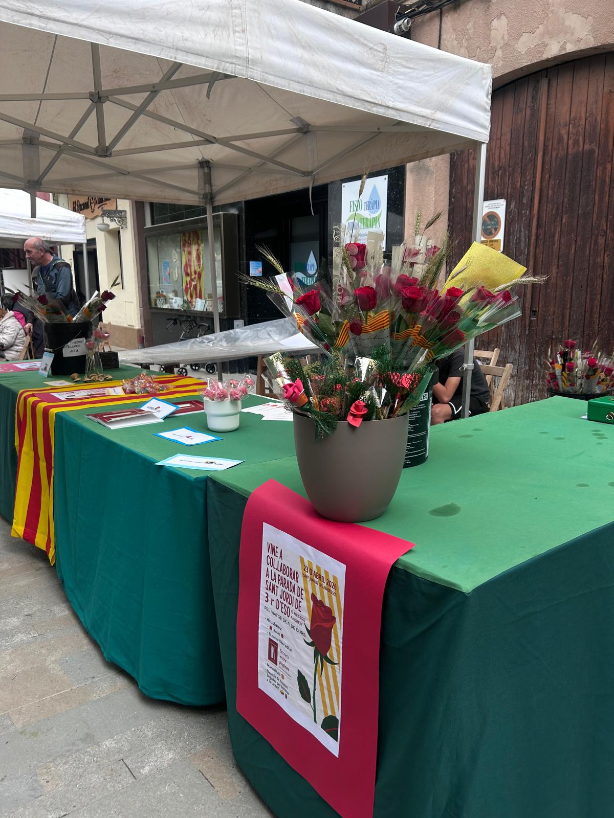 Tot seguit, hem sortit a passejar entre les parades, on l’alumnat de 3r ha tingut un paper molt especial: han preparat i gestionat la seva pròpia parada amb roses, punts de llibre i, fins i tot, el llibre que han escrit ells mateixos!