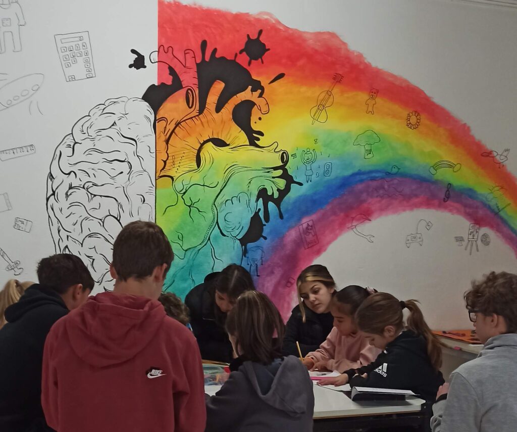 Els nens i nenes d’I4 aquest matí en arribar a l’escola, s’han trobat una macro proposta a l’aula. Hi havia paper d’embalar blanc per tot el terra i safates de pintura de diversos colors i diferents estris per poder pintar. Han pintat fent servir els seus peus, les seves mans i han descobert noves maneres d’experimentar amb la pintura; la seva temperatura, la textura, l’olor… Han tingut una estona per poder crear amb totes les parts del seu cos, tot allò que volien, en un ambient tranquil i relaxat, on la música s’escoltava de fons.
