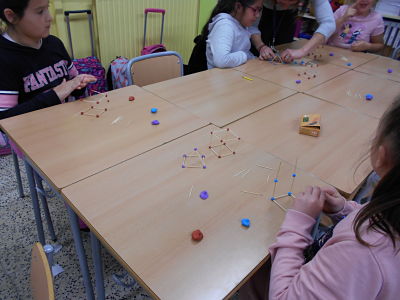 A les tardes dels dimecres treballem les matemàtiques de forma més divertida: Cada grup treballa una activitat diferent: uns fan jocs matemàtics(virus,ubongo,alto voltaje…),altres figures tridimensionals amb escuradents i palletes i altres treballen les diferents figures geomètriques amb paper i volum.