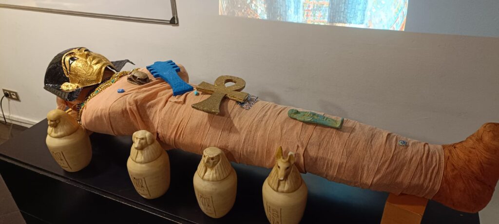A la classe de 5è, estem treballant l’Edat Antiga i aquesta setmana hem pogut conèixer una mica més sobre l’Antic Egipte, fent una visita molt interessant al Museu Egipci de Barcelona. Allà, hem fet una visita guiada a la col·lecció permanent on ens han explicat les característiques principals de l’època faraònica: la societat, el món funerari, l’art, els mites, etc. També hem realitzat un taller de momificació molt interessant on ens han explicat tot el procés, el lloc on s’enterraven, que es ficava dintre de les tombes i moltes curiositats més. I, finalment, hem realitzat nosaltres mateixos el ritual de momificació.