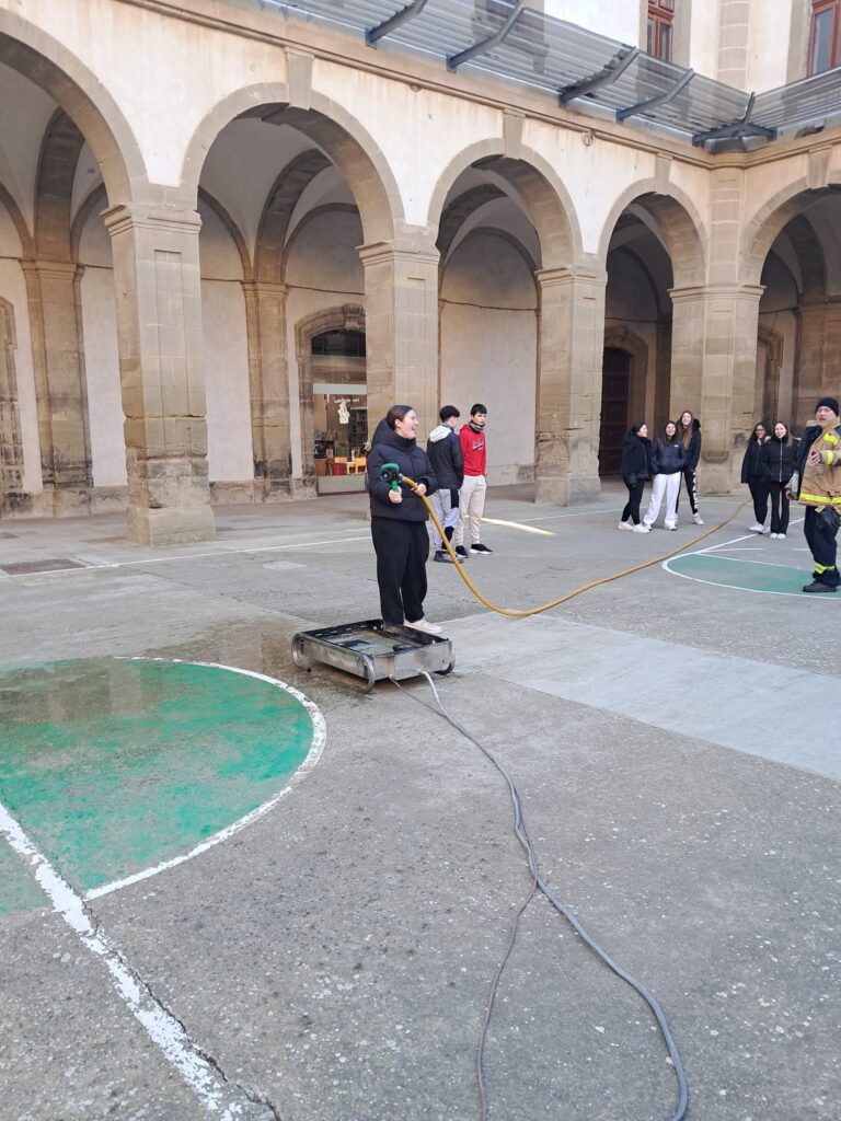 L’alumnat de 3r d’ESO ha assistit a la xerrada “Tancar la porta al foc” sobre com cal actuar en cas d’un incendi a casa. En el cas de 4t d’ESO, han realitzat una xerrada teòrica i, posteriorment, un taller pràctic “Evitem els incendis” on l’alumnat fa ús d’un extintor de diòxid de carboni per tal d’apagar un incendi provocat al pati de l’institut. Aquest taller ha estat possible gràcies a la col·laboració de l’empresa Star Foc d’Igualada que ens han cedit gratuïtament els extintors.