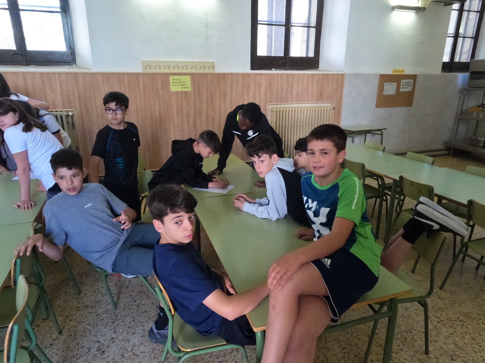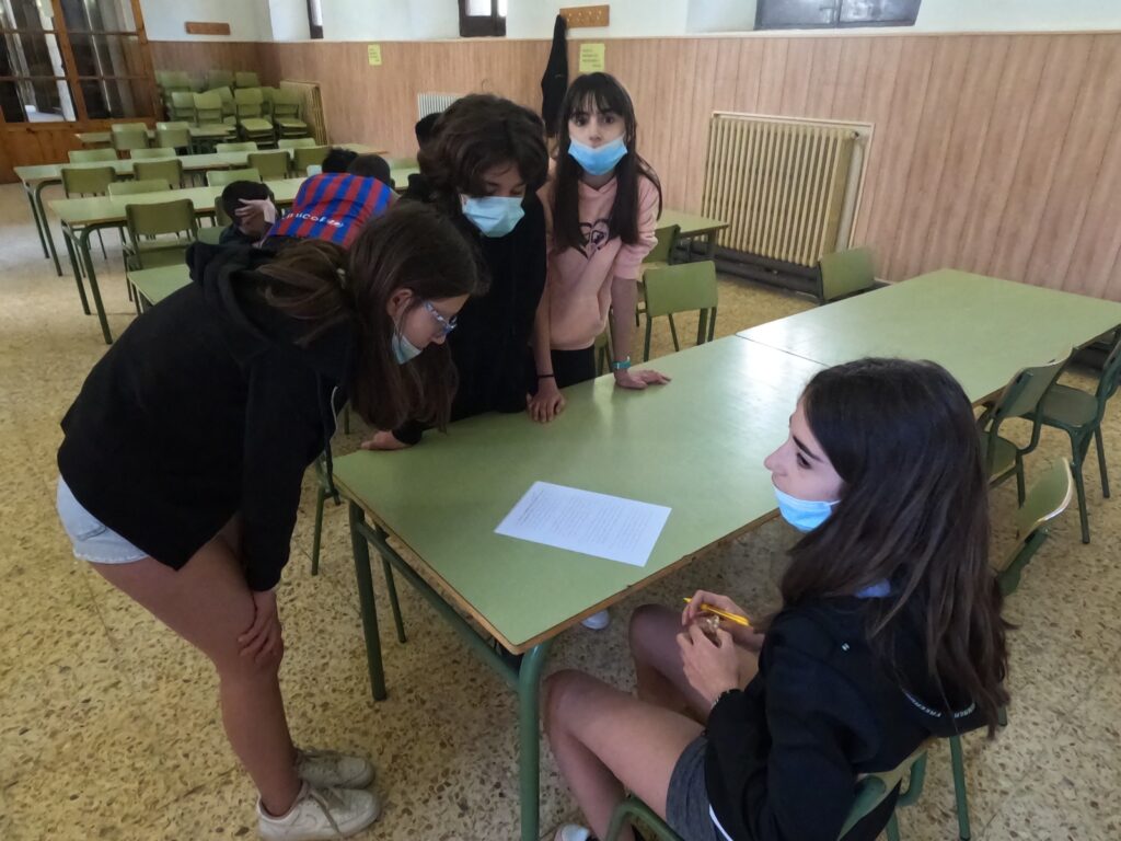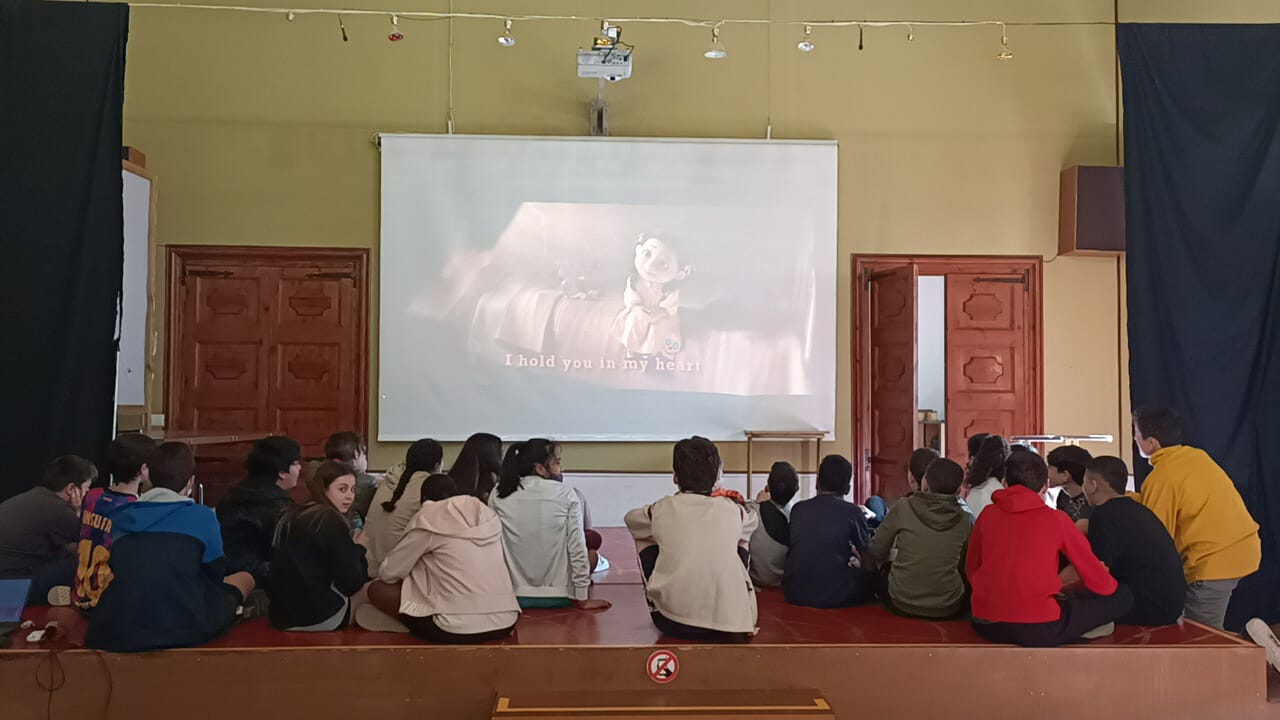 First, we did a “Kahoot!” of the movie “COCO”. When the bell rang, we went to the playground for a gymkhana. It consisted of reading a sentence from a text hanging in the well, memorizing it, and dictating it to your teammates. At the end, we went to take a picture in the courtyard of all the students of 1st ESO with some letters hanging in the wall where it said: “WELCOME TO THE ENGLISH DAY”. Finally, we went up to the Sala d’Actes for a Karaoke. The song was: ” Remember me” from the movie “COCO”.