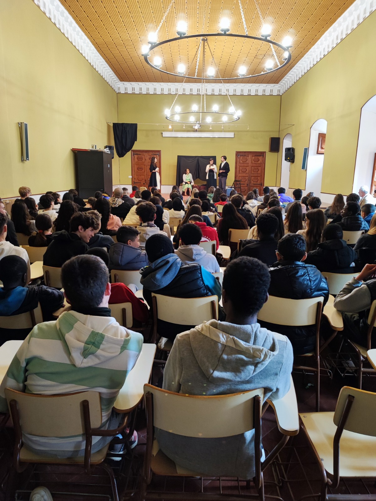 Promoguda des del Departament de Llengua i Literatura Castellana de l’Institut Antoni Torroja, la companyia Retret Teatre va oferir aquest dimecres, 7 de febrer, a la sala d’actes del centre, la representació de l’obra “¡Háblame de Lorca, Miguel!”, davant un centenar llarg d’alumnes de 3r i 4t d’ESO, i estudiants de Literatura Castellana de Batxillerat. Amb dramatúrgia pròpia dels quatre membres de la mateixa companyia barcelonina, la trama recreava un hipotètic contacte entre el poeta Miguel Hernández i tres de les actrius de la companyia La Barraca de Federico Garcia Lorca, un cop aquest fou ja afusellat pel bàndol franquista. El fil argumental permetia, així, anar incloent-hi petits fragments de les més conegudes obres de Lorca, així com poemes d’ambdós escriptors.