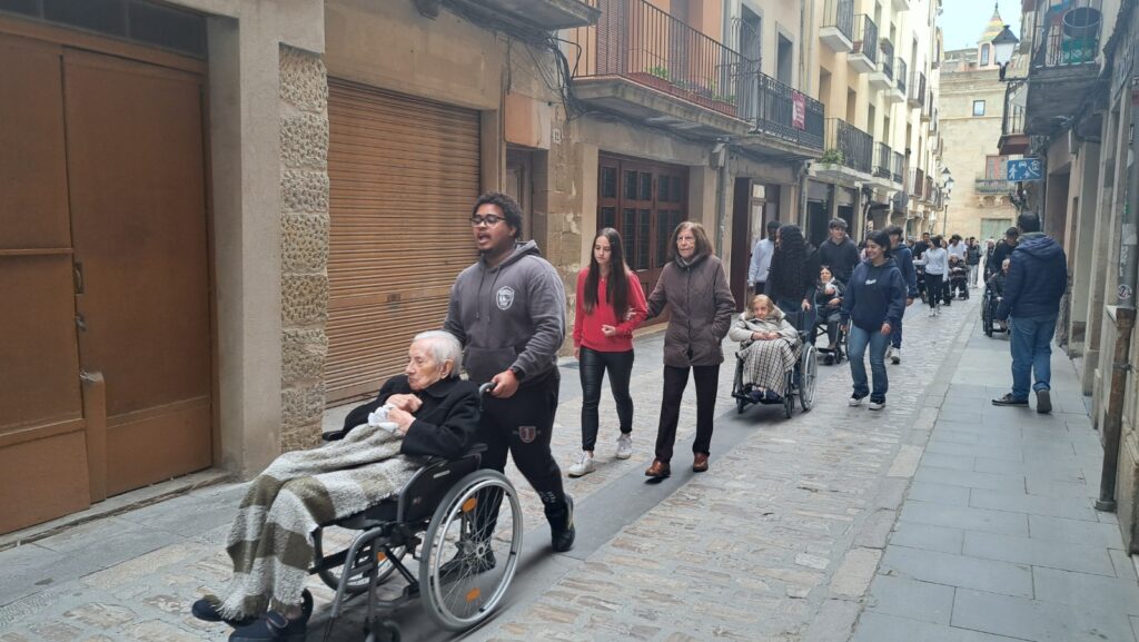 Per sant Isidre des de la matèria APS, on desenvolupem activitats complexes que integren el servei a la comunitat amb aprenentatge de continguts, competències, habilitats o valors i des de l’assignatura de religió vam realitzar l’activitat de passejar els avis i àvies pels indrets de Cervera on hi havia activitats de Sant Isidre. Toc de campanes a la plaça Major, passeig Balmes on hi havia els tractors aparcats i carretes guarnides.