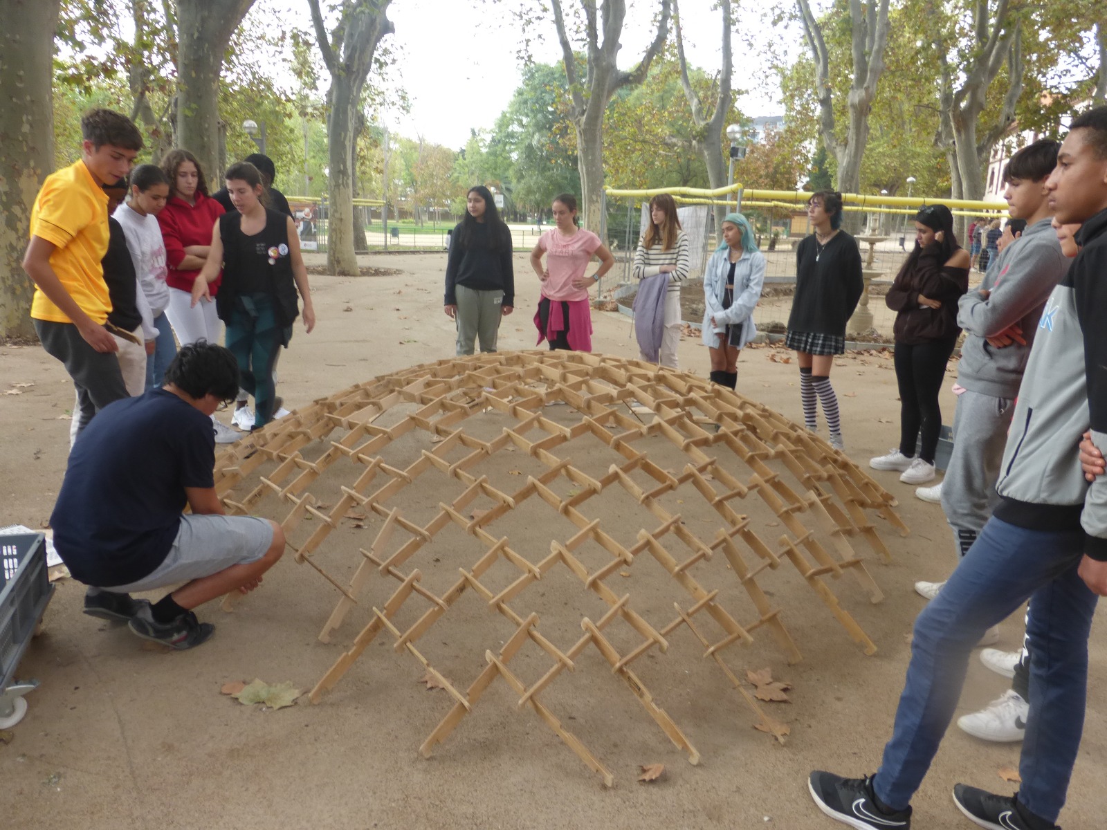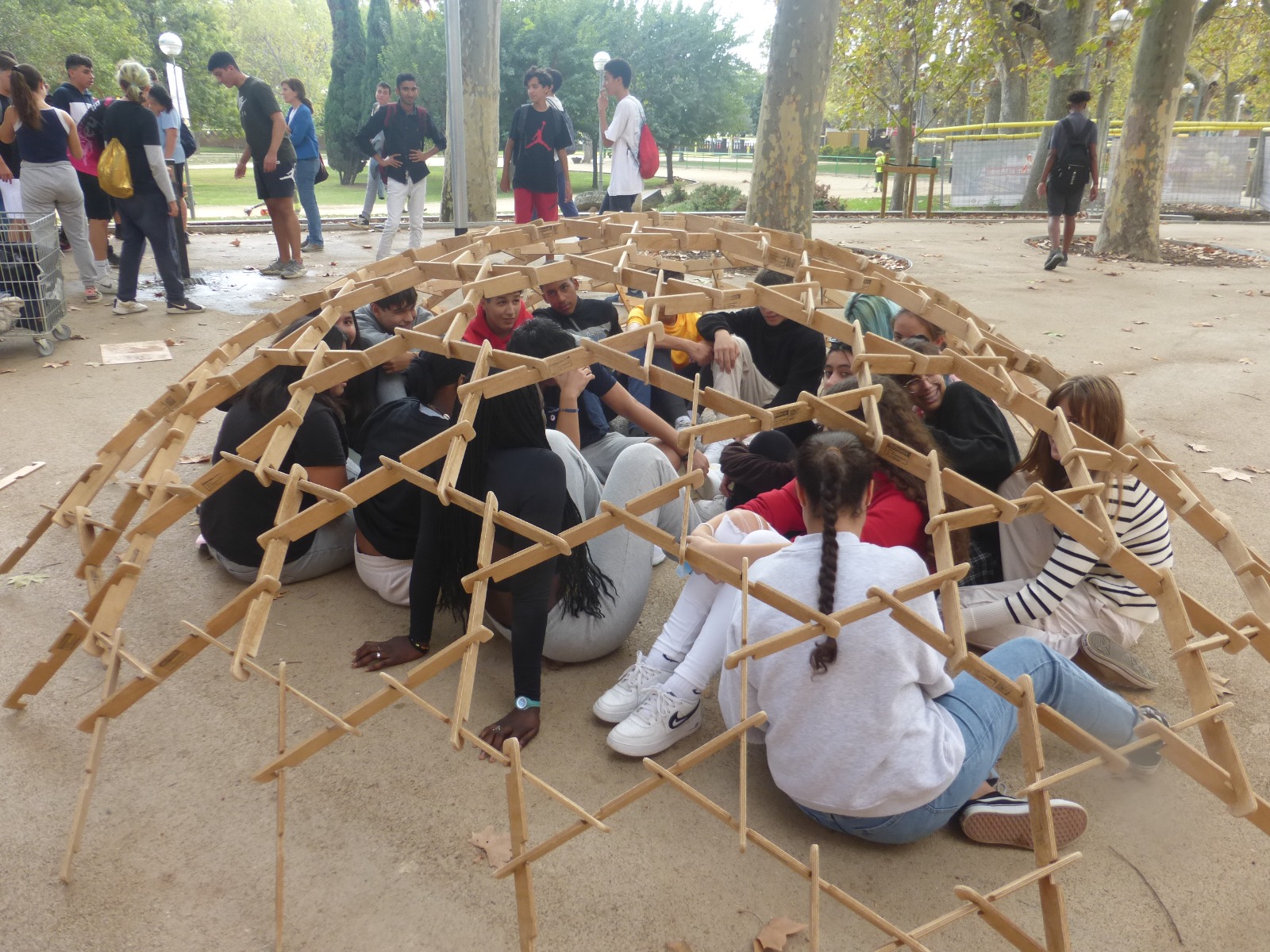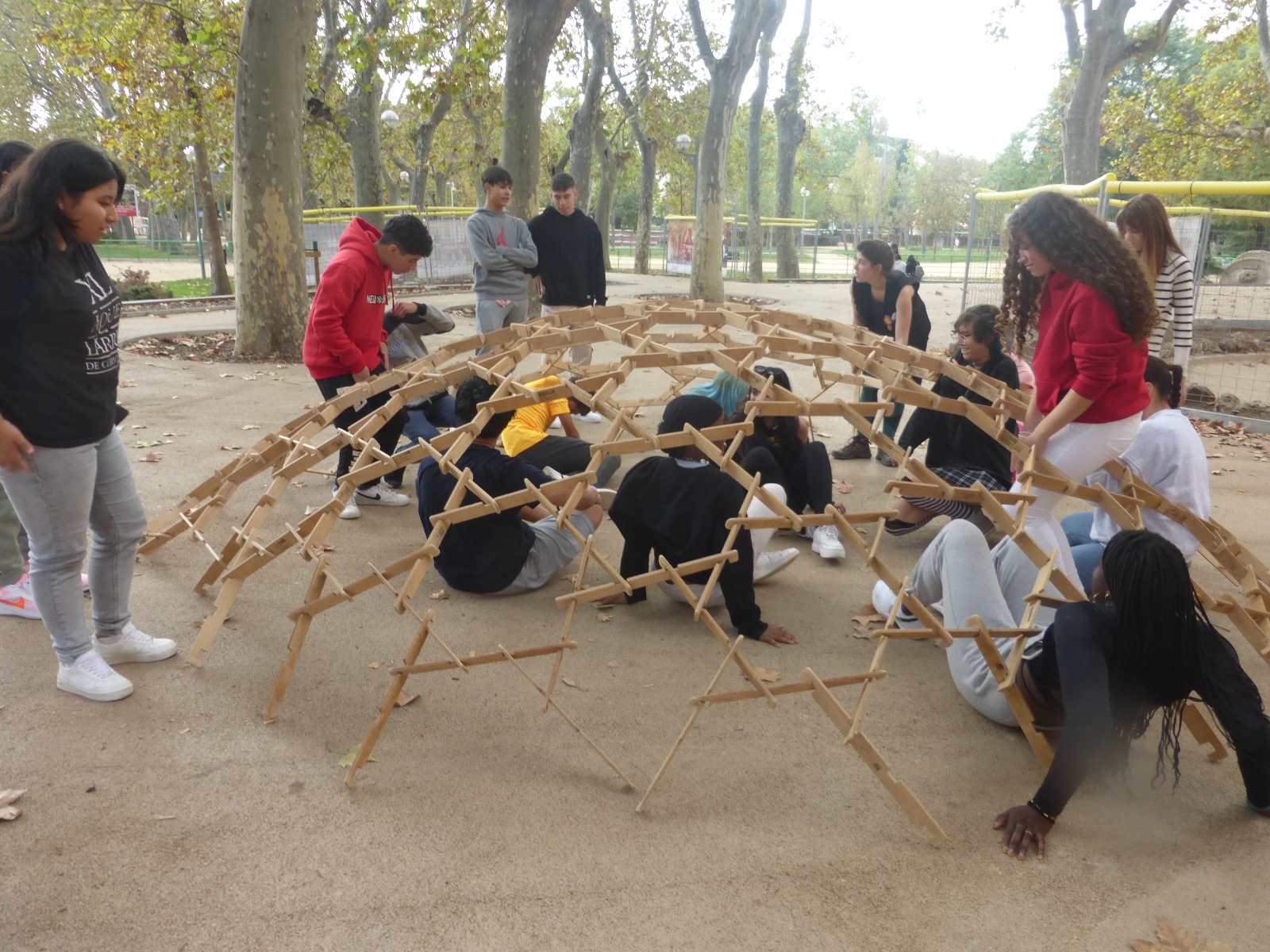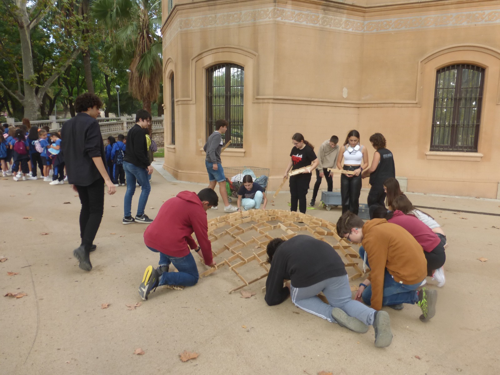 La sortida ha començat amb una visita guiada per dins el Museu on l’alumnat ha pogut manipular el material i experimentar dins el món matemàtic. Seguidament, hem fet una gimcana exterior per grups en el Parc Mercader, i finalment, hem construït dues magnífiques cúpules de Leonardo.