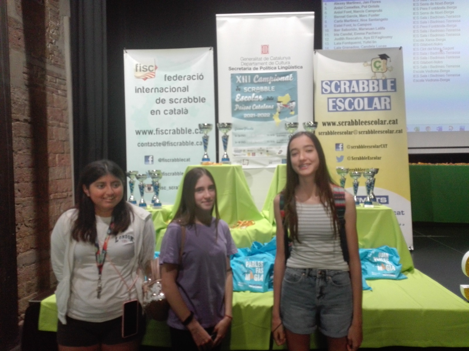 El dissabte 21 de maig les alumnes del taller d’Scrabble van participar al XIII Campionat d’Scrabble Escolar del Països Catalans. Van gaudir molt jugant amb alumnes de Catalunya, del País Valencià i de la Catalunya Nord. Van fer un paper molt digne i desitgen repetir l’experiència el més aviat possible!
