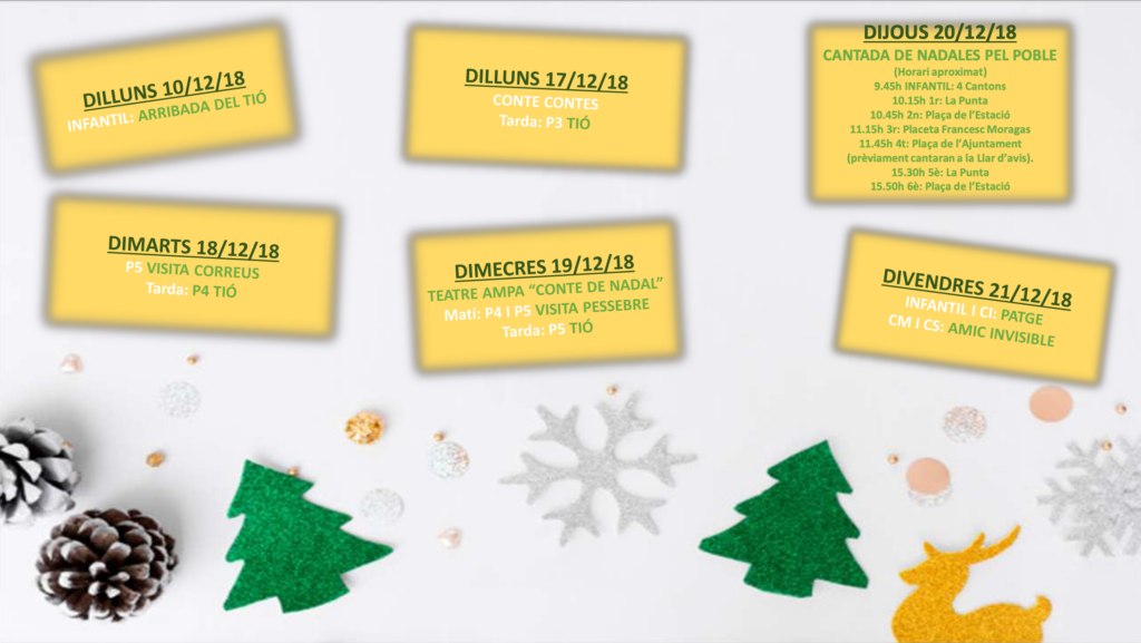 Els nens i nenes de sisè hem celebrat que s’aproximen les festes de Nadal amb activitats que formen ja part de la tradició a l’escola. Us deixem un vídeo per reviure la cantada de nadales que vam fer a la plaça de l’estació. Clicant aquí, podeu donar una ullada a altre material audiovisual de les […]