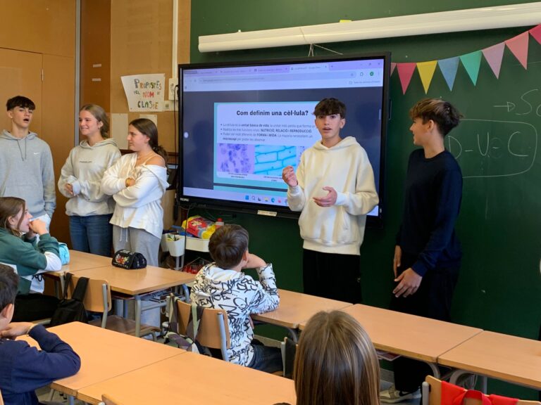 L’alumnat de 3r d’ESO de Biologia i Geologia i el de 5è de Primària ha treballat durant aquest trimestre continguts relacionats amb la cèl·lula. Vam aprofitar la Setmana de la Ciència per compartir aquests aprenentatges i crear espais de convivència entre alumnes de diferents etapes. Una experiència enriquidora per a tothom!