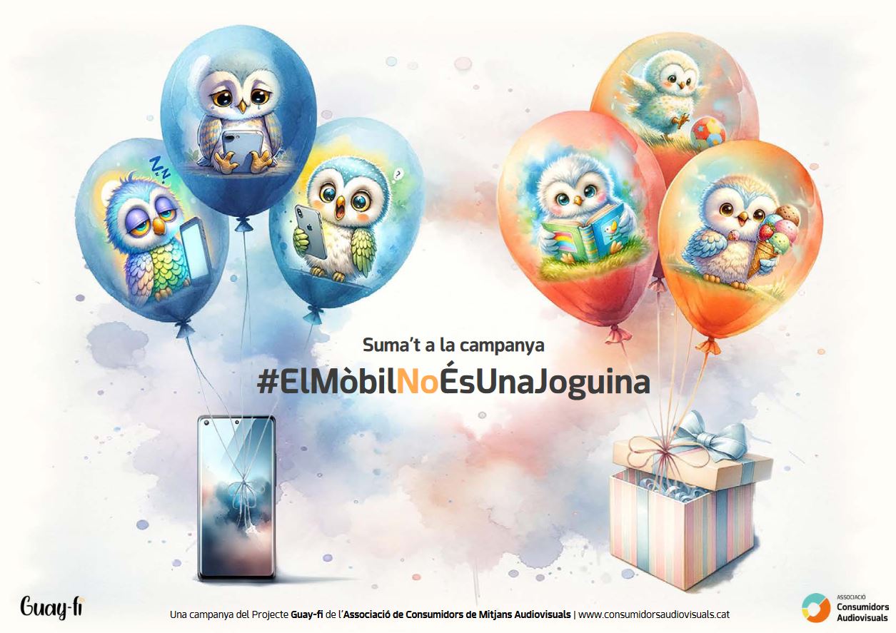 Us compartim el cartell i un breu vídeo de la campanya “El mòbil no és una joguina” que ens ha fet arribar l’Associació de Consumidors Audiovisuals de Catalunya per tal de fer-ne difusió de cara a les festes.