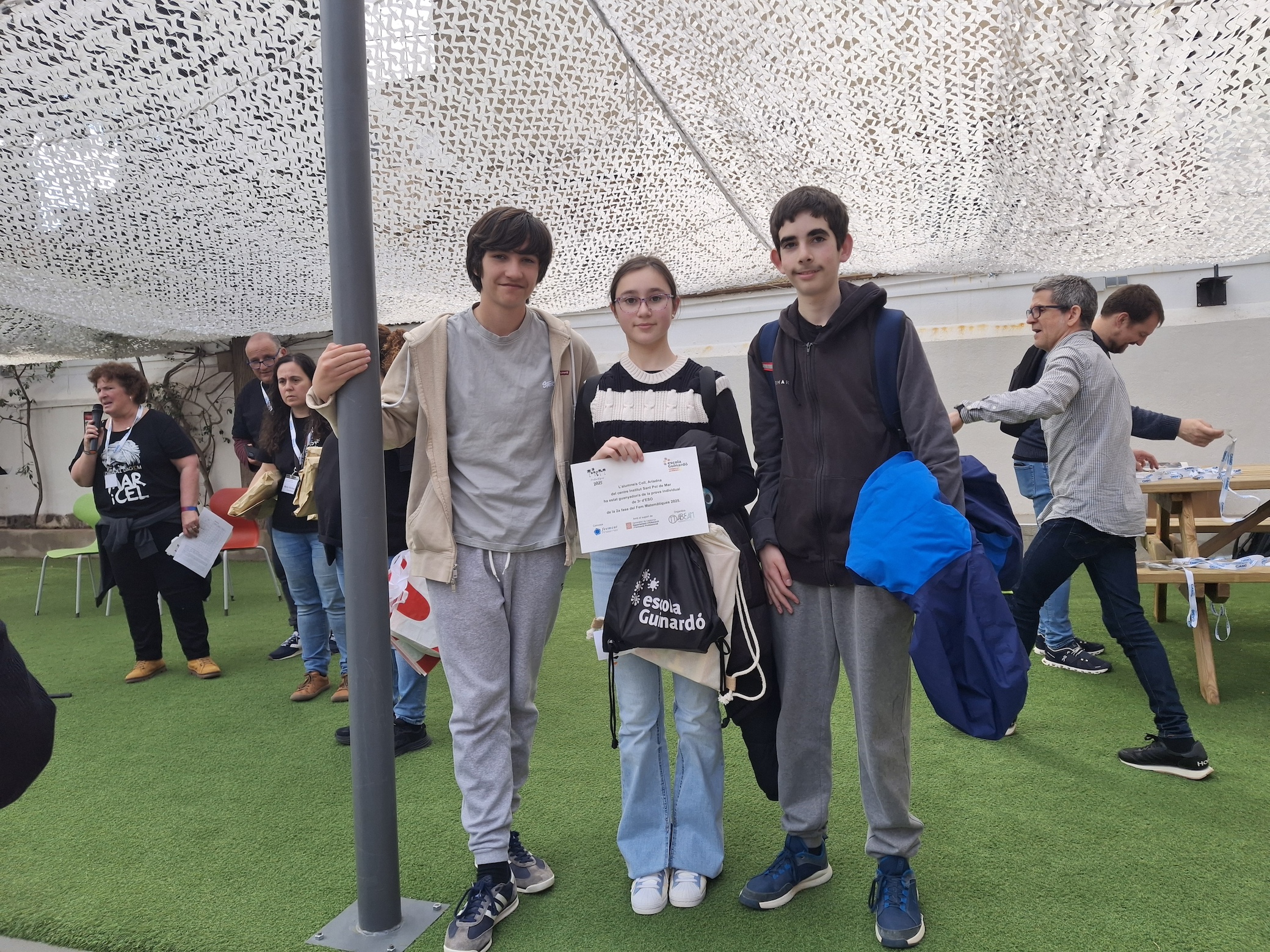 El dissabte 5 d’abril els alumnes de 3r d’ESO, Martí H, Dylan G, Ariadna C van participar en la segona fase del concurs del Fem matemàtiques que es va dur a terme a l’Escola Guinardó de Barcelona.