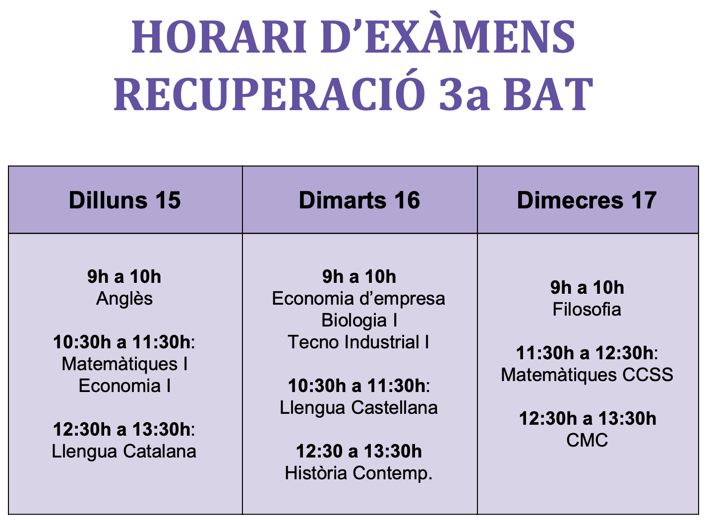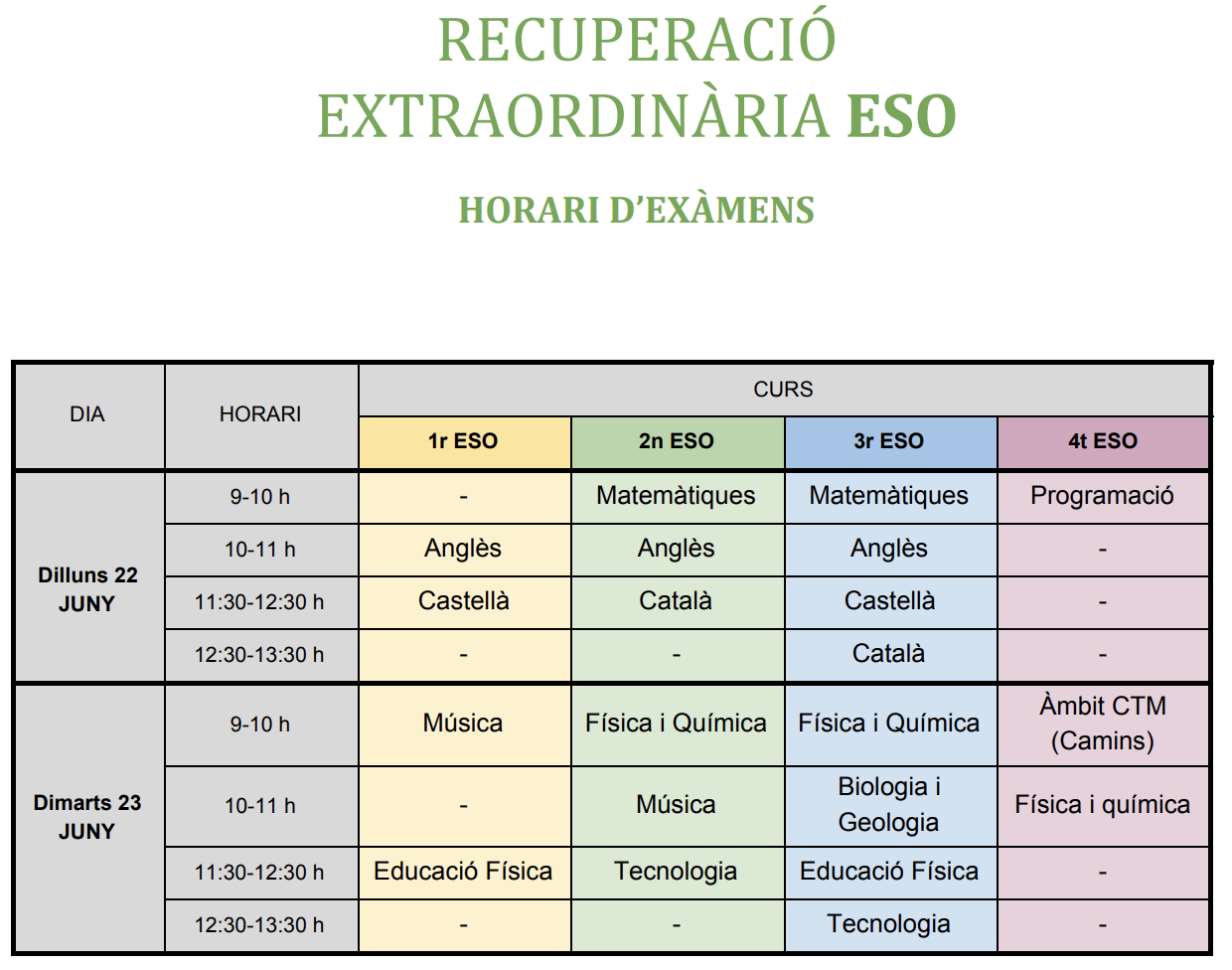 Els dies 22 i 23 es faran les recuperacions. Ja us enviarem els horaris, seran proves telemàtiques.