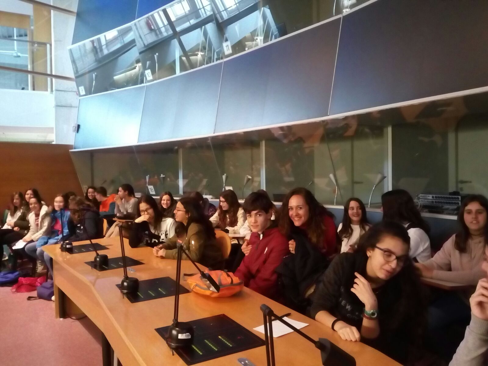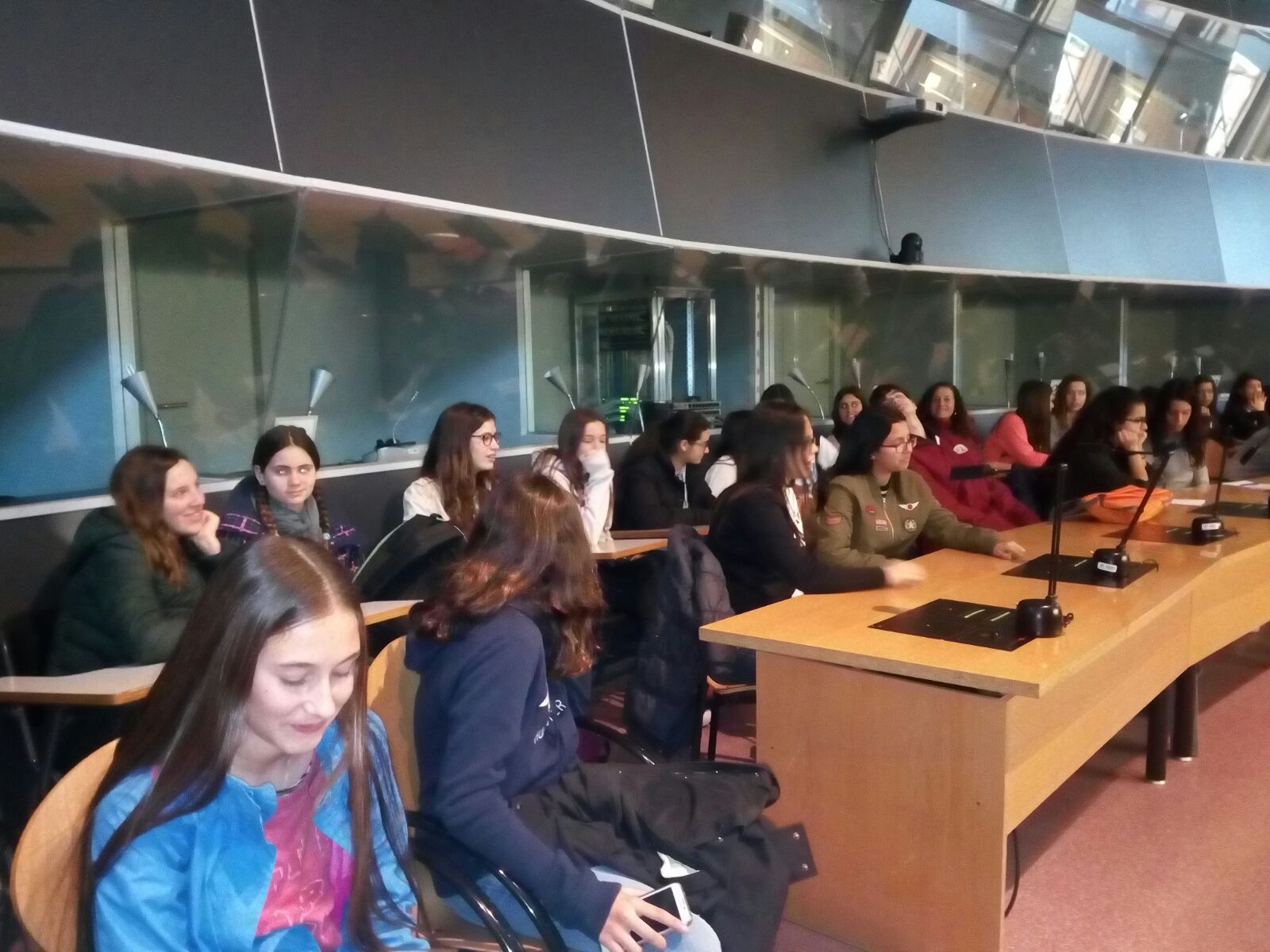 Els nostres alumnes han pogut aprendre en què consisteix la professió d’intèrpret a través de tres grans professionals d’aquest camp. Així doncs, ja saben què és la interpretació simultània, la consecutiva i la de “a cau d’orella”. També han fet un tastet d’interpretació simultània d’un discurs en alemany “Im Supermarkt” dins de les sales de les cabines d’interpretació simultània.