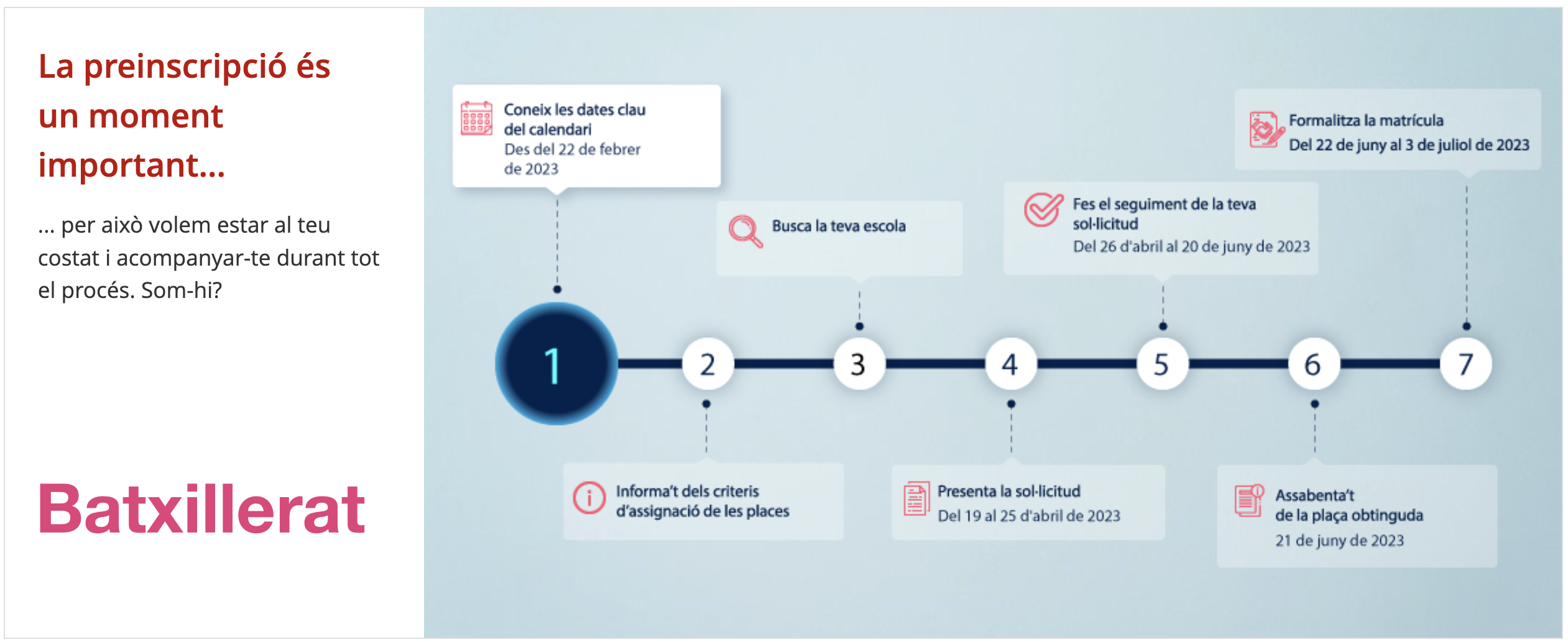 - Període de presentació de sol·licituds de preinscripció: del 19 al 25 d’abril de 2023.