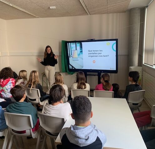Aquest matí, els nens i nenes de 3r, 4t i 5è han assistit a unes xerrades formatives per a la conscienciació de l’ús de les pantalles a càrrec de l’Associació de Consumidors de Mitjans Audiovisuals de Catalunya.