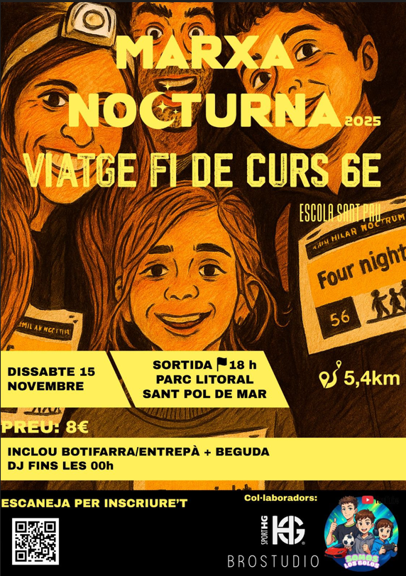 Esteu a punt per a una aventura inoblidable? Els alumnes de 6è de l’Escola Sant Pau estan organitzant la Marxa Nocturna 2025 per al seu viatge de fi de curs, i volem que sigueu part d’aquesta nit màgica!