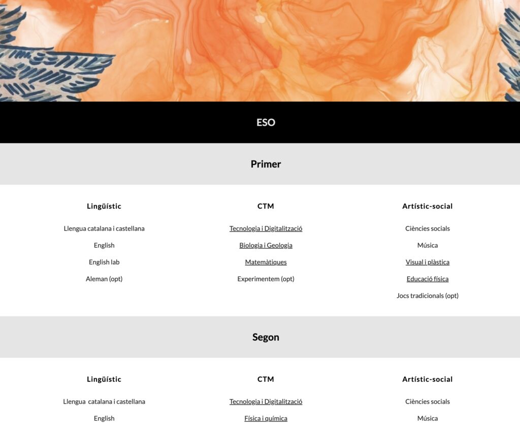 La majoria de les matèries de secundària disposen d’un on es comparteixen els objectius, metodologia, continguts,..