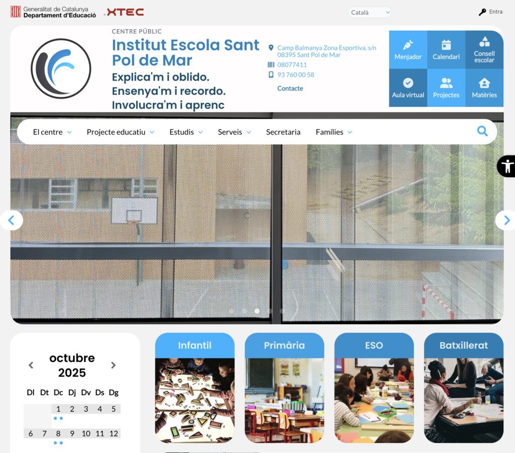 El centre disposa d’un web amb la informació pública. S’hi poden trobar informacions estàtiques, que es revisen periòdicament (documentació, calendaris, dades del centre, etc.) i articles dinàmics sobre el que va succeint al centre dia a dia. A més també disposa d’enllaços educatius, a sites de matèries i projectes del centre, al Twitter, a l’Instagram i al Canal de Telegram.