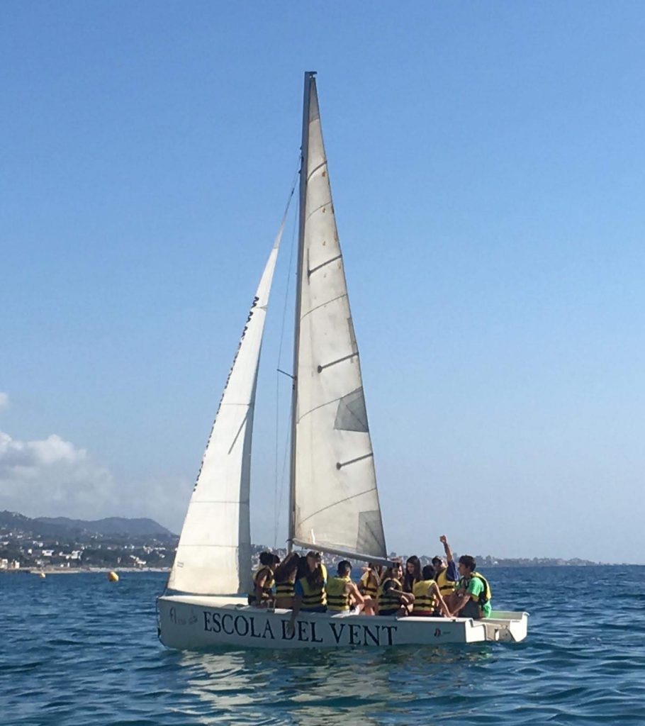 La següent activitat era, per a mi, vela de la qual puc dir que va ser realment impressionant aprendre els moviments de vela i les posicions que aquesta pot adoptar, en aquesta activitat millor ni canteu, ni balleu, ni crideu, per a dos motius, primer, no aprendreu res i segon, la botavara que suporta la vela major quan el vaixell vira, es mou bruscament cap a l’altre costat i si esteu despistats potser serà la botavara la que us calli. Per sort a mi no em va donar, però em vaig marejar i literalment em van enviar a l’aigua fins a la vora de la platja.