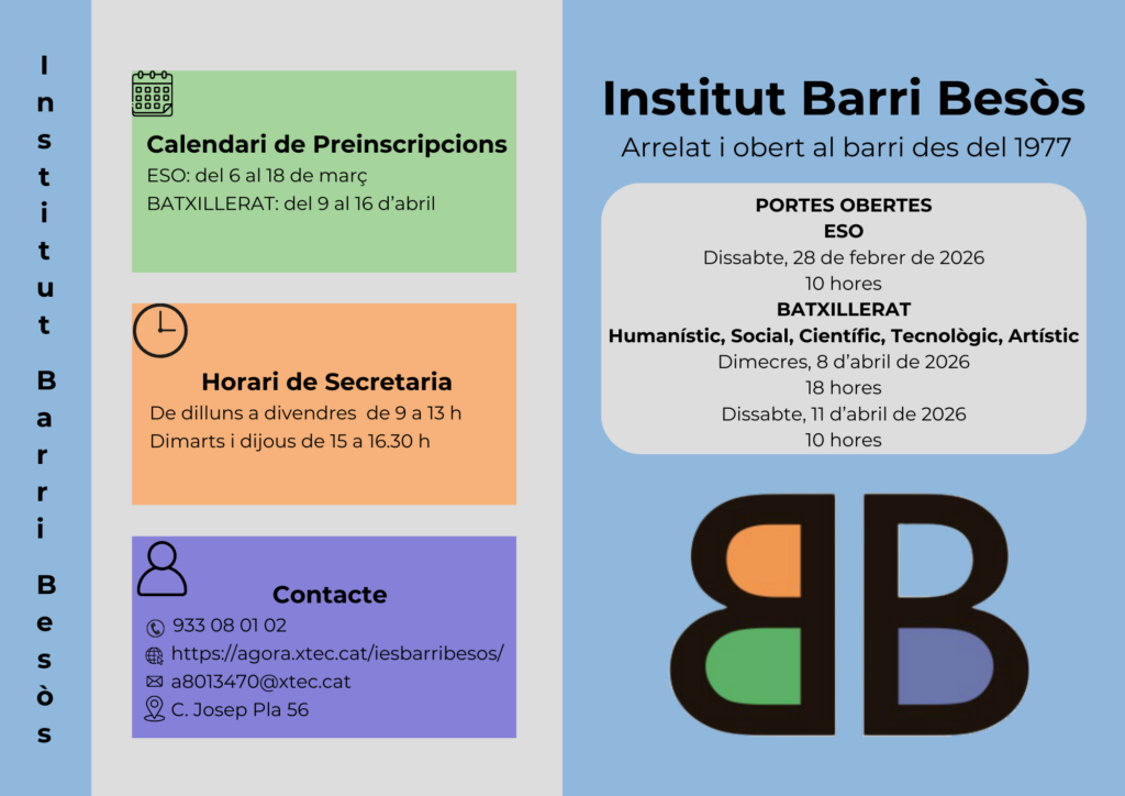 Si voleu conèixer el nostre institut, us hi esperem els dies 8 (18 h) i 11 d’abril (10 h)