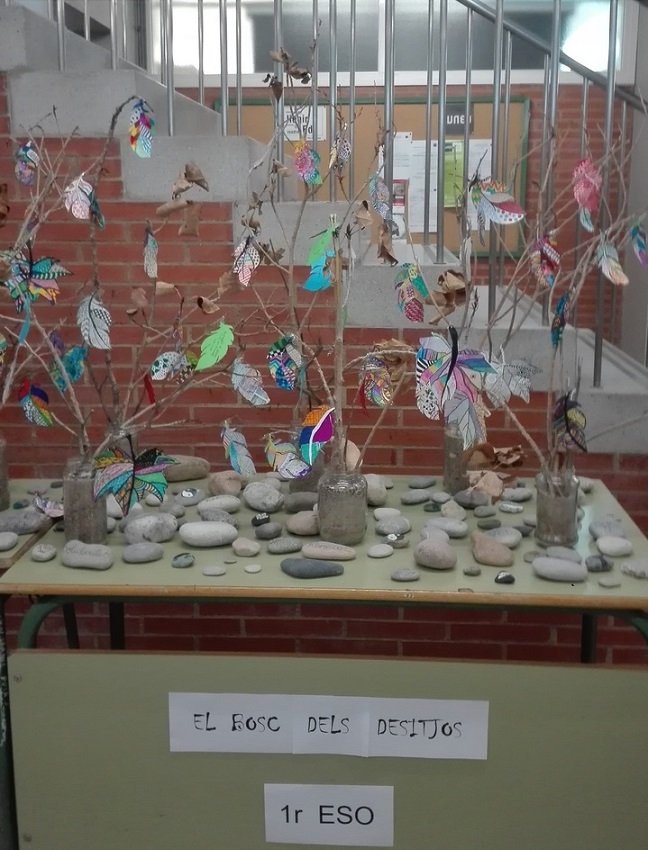 Han escrit al revers de les fulles desitjos relacionats amb el medi ambient i hem creat un bosc amb materials o objectes trobats.