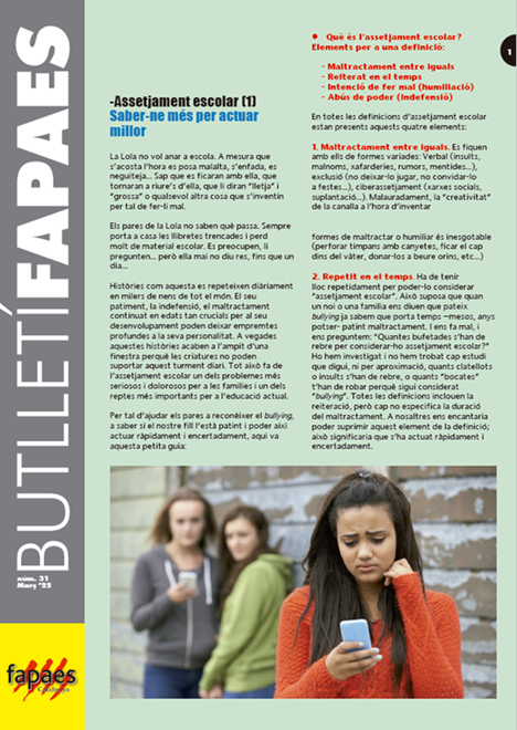 El butlletí informatiu de la FAPAES, en el seu número 31, ens ofereix tot un seguit d’informacions que poden ser del vostre interès. S’hi tracten temes com l’assetjament escolar, la salut mental a les escoles, el programa de formació per a famílies i alumnat, o la visibilitat de les AMPA/AFA amb l’eina NODES, entre d’altres.