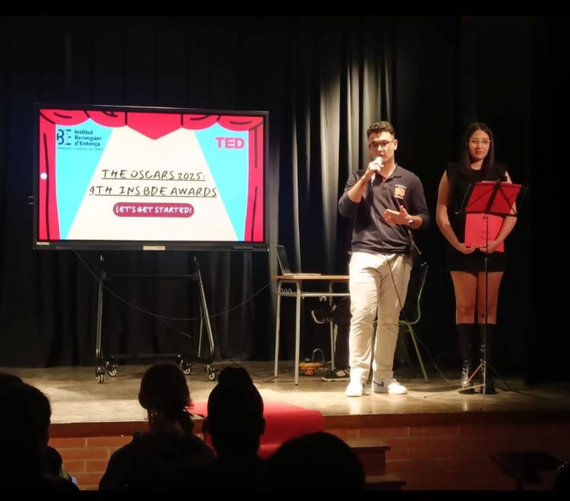 On Monday, March 24, a dress rehearsal was held in the format of an Oscars ceremony, attended by two representatives from the CRP. Finally, on Monday, March 31, the final event took place at the municipal auditorium. The other two participating high schools, INS Cambrils and INS Miami, along with the CRP representatives joined us in our town and contributed positively to the event.