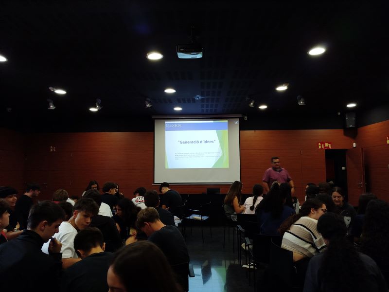 L’alumnat de Batxillerat i de Cicles Formatius que cursen les matèries de Funcionament de l’empresa i d’Empresa i iniciativa emprenedora, respectivament, han assistit a la sessió de presentació del concurs «Enfila el teu futur» d’IDETSA, en el que participaran aquest curs 24/25.