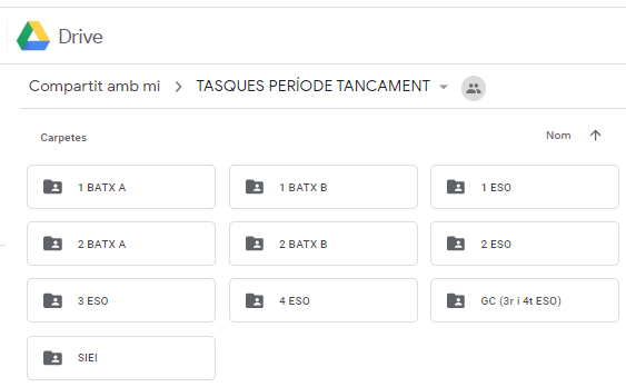 Les tasques encomanades a l’alumnat per a aquest període de tancament són accessibles a la nostra plataforma de Drive compartit,