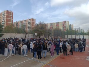 Avui, 5 de novembre, alumnat, PAS i professorat de l’Institut Bellvitge ens hem ajuntat per commemorar les víctimes de la DANA amb la voluntat d’oferir el nostre màxim respecte, suport i conscienciació. Volem acompanyar als membres de la comunitat educativa que més de prop estan patint aquesta situació i enviar, alhora, un missatge de compromís i solidaritat amb el País Valencià.