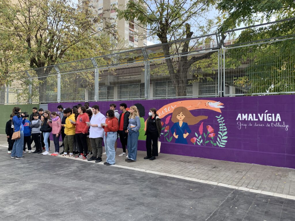 Enguany, des de la Comissió de Coeducació, hem volgut treballar en xarxa amb diferents agents del barri i del municipi i durant tota la setmana hem dut a terme diverses activitats amb la finalitat d’interpel.lar a tota la comunitat educativa. Hem preparat diferents tallers -siluetes, origamis, pancartes-, xerrades -violències masclistes amb col.laboració amb l’Associació Bruixes- i activitats diverses, que han culminat amb la inauguració del mural exterior elaborat per l’alumnat del PFI de pintura i del Batxillerat Artístic en col.laboració amb l’Associació de Dones de Bellvitge, Amalvígia”.