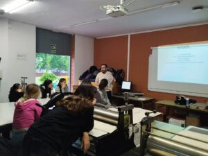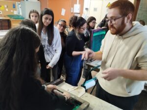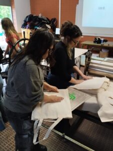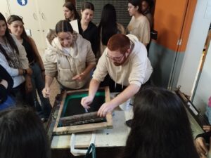 Els alumnes de segon de batxillerat artístic, dins la matèria de disseny, hem estampat unes bosses amb en Josep Vea al taller de serigrafia de l’escola Serra i Abella.