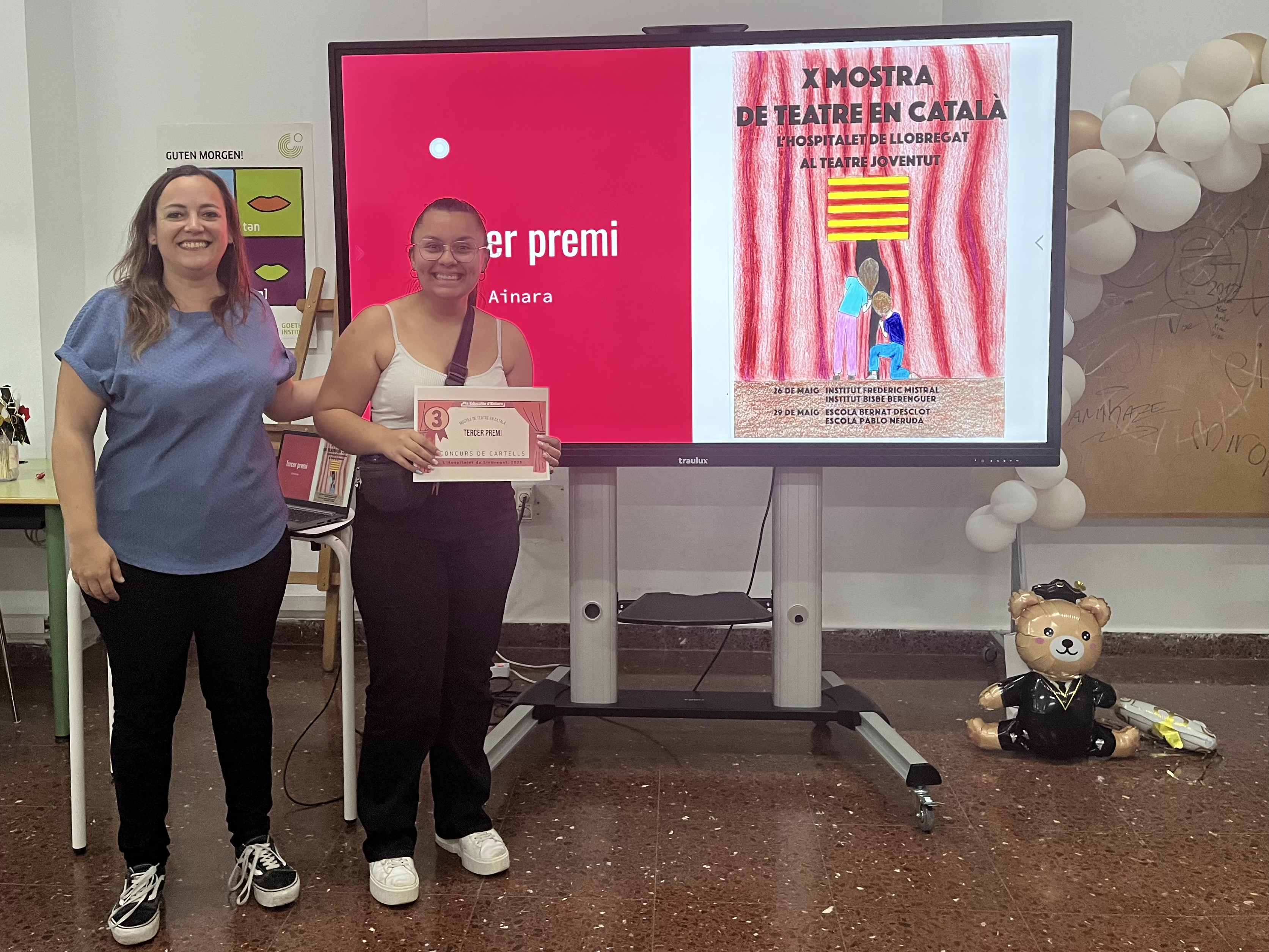 Us deixem unes imatges dels tres cartells finalistes i del lliurament del premi. Tercer premi per l’Ainara Goytizolo, segon premi per Nerea Moreno, i primer premi per Darinka Ezquivel.